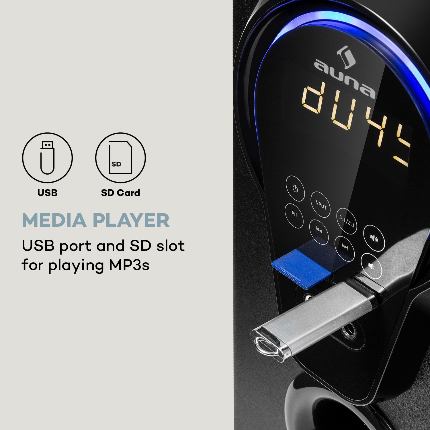 Auna Areal 525 DG, 5.1 systém domáceho kina, 125 W RMS, optický vstup, BT, USB, SD, AUX, diaľkový ovládač – Kúpiť