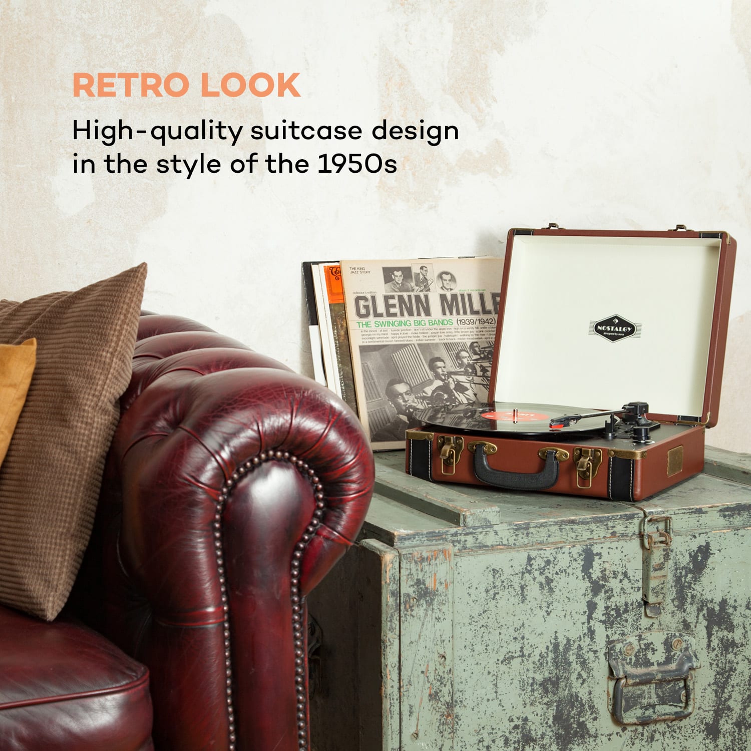 Chcete sa vrátiť do nostalgie minulých čias? Potom prineste z pivnice svoje staré obľúbené platne!So zariadením Jerry Lee od značky Auna a s jeho sponami a kovovými dekoráciami v akoby použitom dizajne neprehrávate len 3 rôzne veľkosti platní, ale tiež môžete použiť Vaše obľúbené platne v kompaktnom digitálnom formáte. Zariadenie má preto zadný USB port, cez ktorý možno LP signál jednoducho nahrávať do počítača. Zároveň je gramofón Jerry Lee týmto spôsobom zásobovaný prúdom. Vhodný USB kábel a adaptér pre pripojenie do siete je súčasťou dodávky.Gramofón Jerry Lee od spoločnosti Auna nevyžaduje žiadne ďalšie reproduktory, vo svojom šikovnom kufríku má už zabudované dva stereo reproduktory. Napriek tomu ponúka zadný cinch vstup možnosť pripojenia externých reproduktorov. Hlasitosť možno plynulo nastaviť priamo na zariadení pomocou otočného regulátora.Pre pohodlnú prepravu sa dá gramofón jednoducho otvoriť a zatvoriť s dvomi pákovými uzávermi. Vďaka gumovým nožičkám je možné nastaviť ho optimálne.