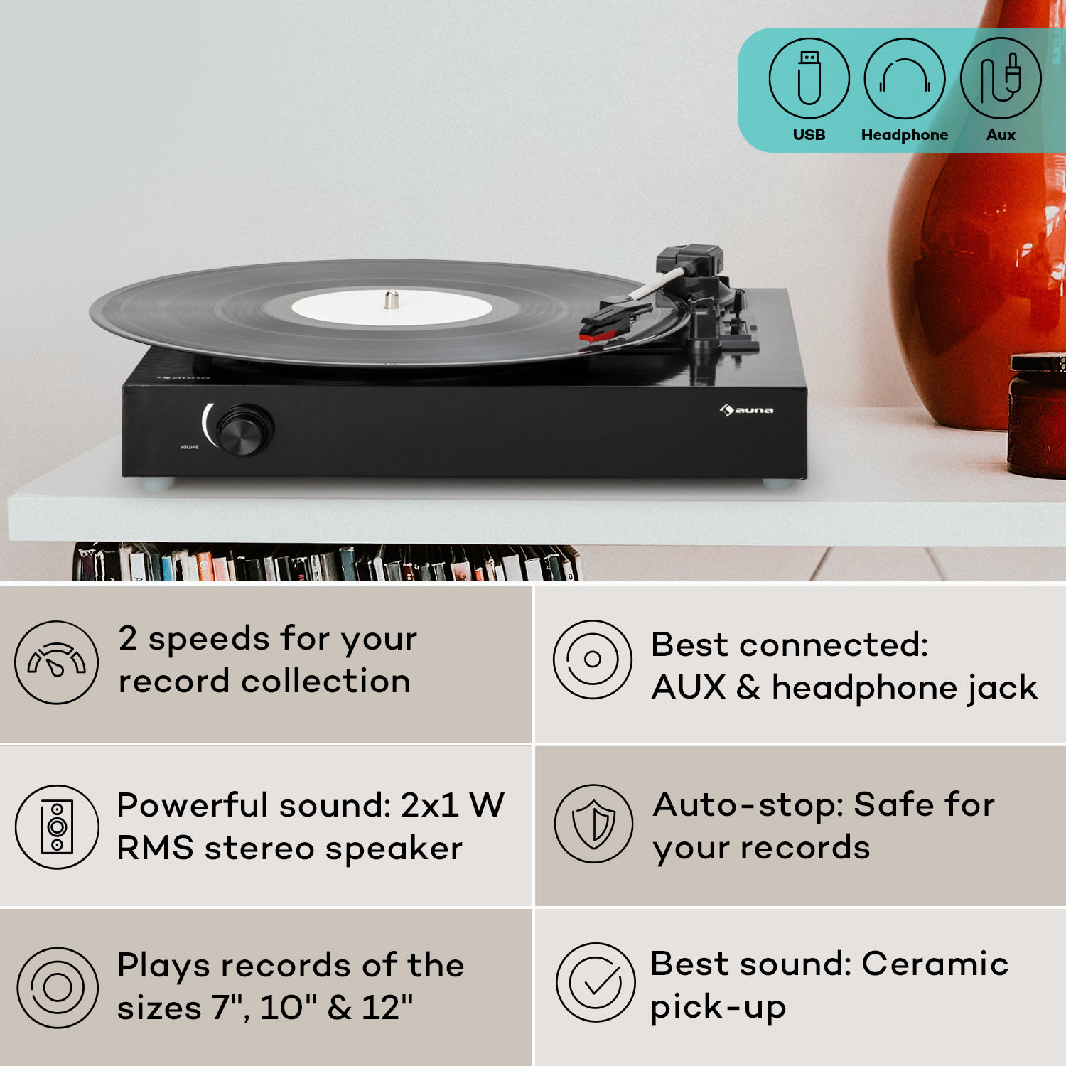 Auna The Player, gramofón, DIY, vrátane reproduktora, 33/45 otáčok za minútu – Kúpiť