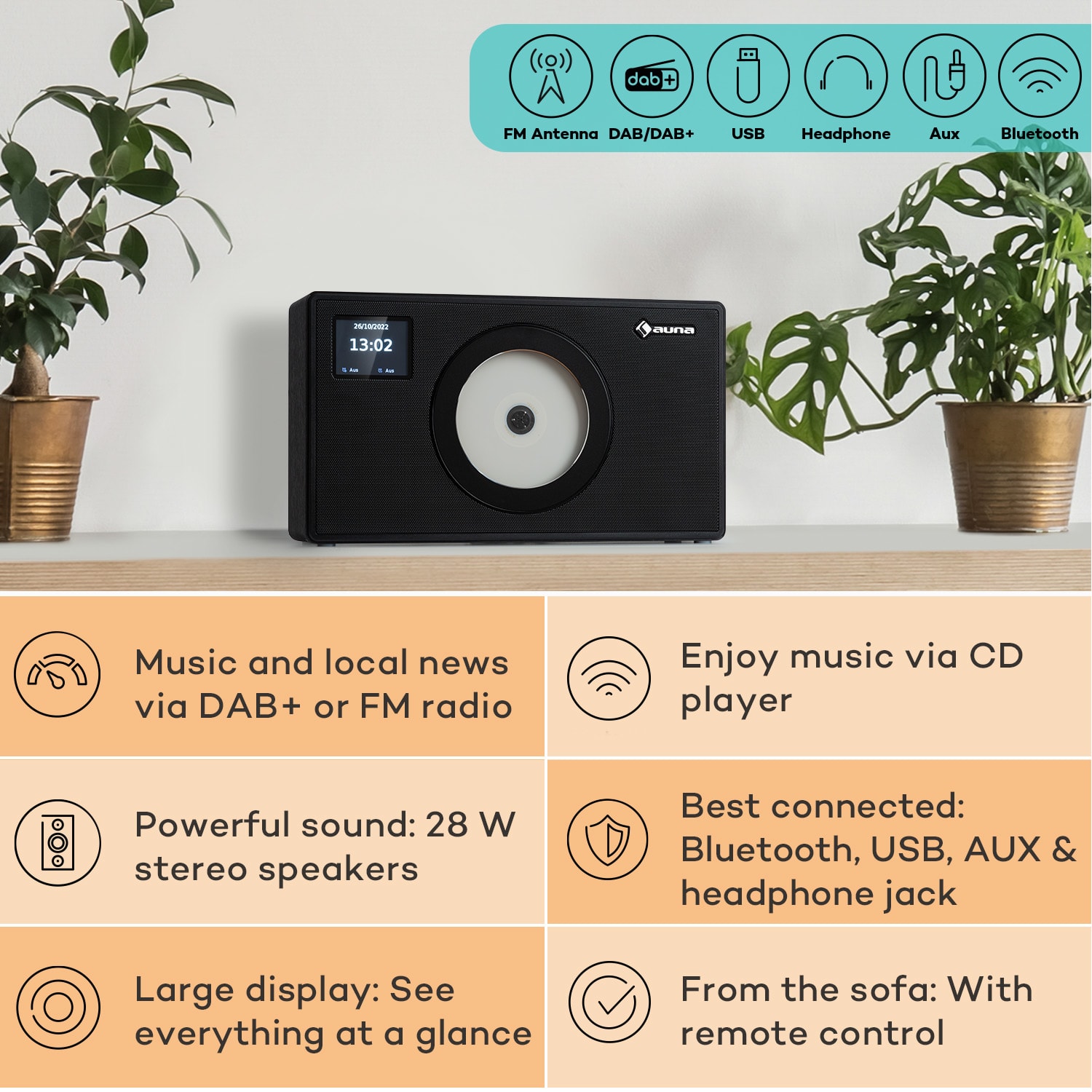 Auna Vertico Swing DAB | DAB+ rádio so Swing CD prehrávačom | FM/DAB+ | AUX | BT | USB – Kúpiť
