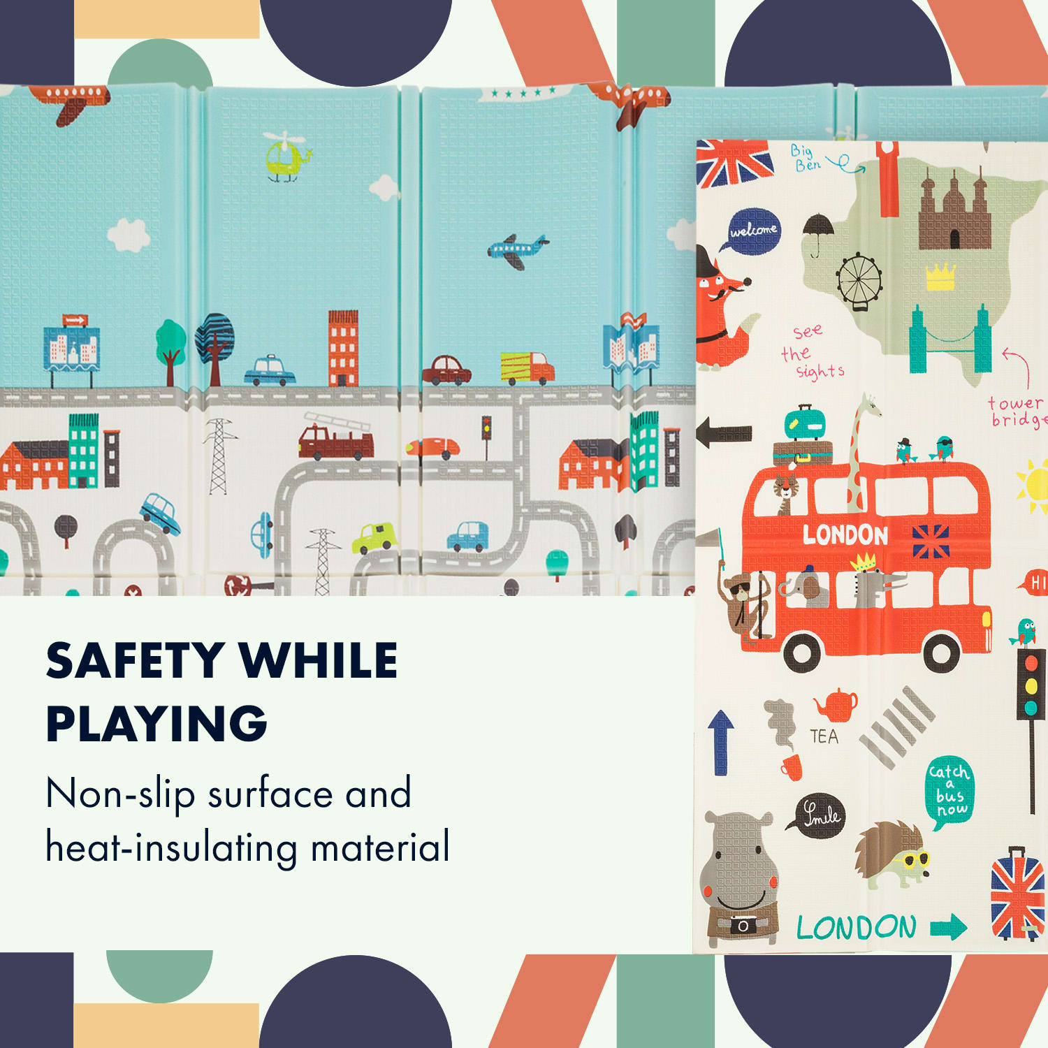 Detská penová podložka je ideálnym riešením pre bezpečné a zdravé hranie detí. Používame najbezpečnejší materiál XPE na svete, ktorý je úplne netoxický a bez kontaminantov. S najlepšou technológiou povrchovej úpravy sa penová podložka na hranie neopotrebuje a je úplne zdravotne nezávadná. Okrem toho poskytuje dobrú izoláciu na všetkých podlahových plochách a znižuje hluk a nárazy.Detská podložka na hranie ponúka veľkú hraciu plochu, ktorá chráni deti pred pošmyknutím a poskytuje im bezpečnú zábavu. Obojstranný dizajnový vzor podporuje kognitívne schopnosti vášho dieťaťa a umožňuje mu voľne loziť po skladacej podložke. Veľká detská podložka s hrúbkou 1 cm a päťvrstvovou skladacou konštrukciou sa ľahko skladuje a prepravuje. Po zložení sa dá umiestniť do skrine alebo pod posteľ, čím šetrí miesto v detskej izbe. Vodeodolný povrch umožňuje jednoduché čistenie, stačí ju len pretrieť jemnou, vlhkou handričkou. Bezpečná, zdravá a praktická detská penová podložka je skvelým doplnkom každej detskej izby.