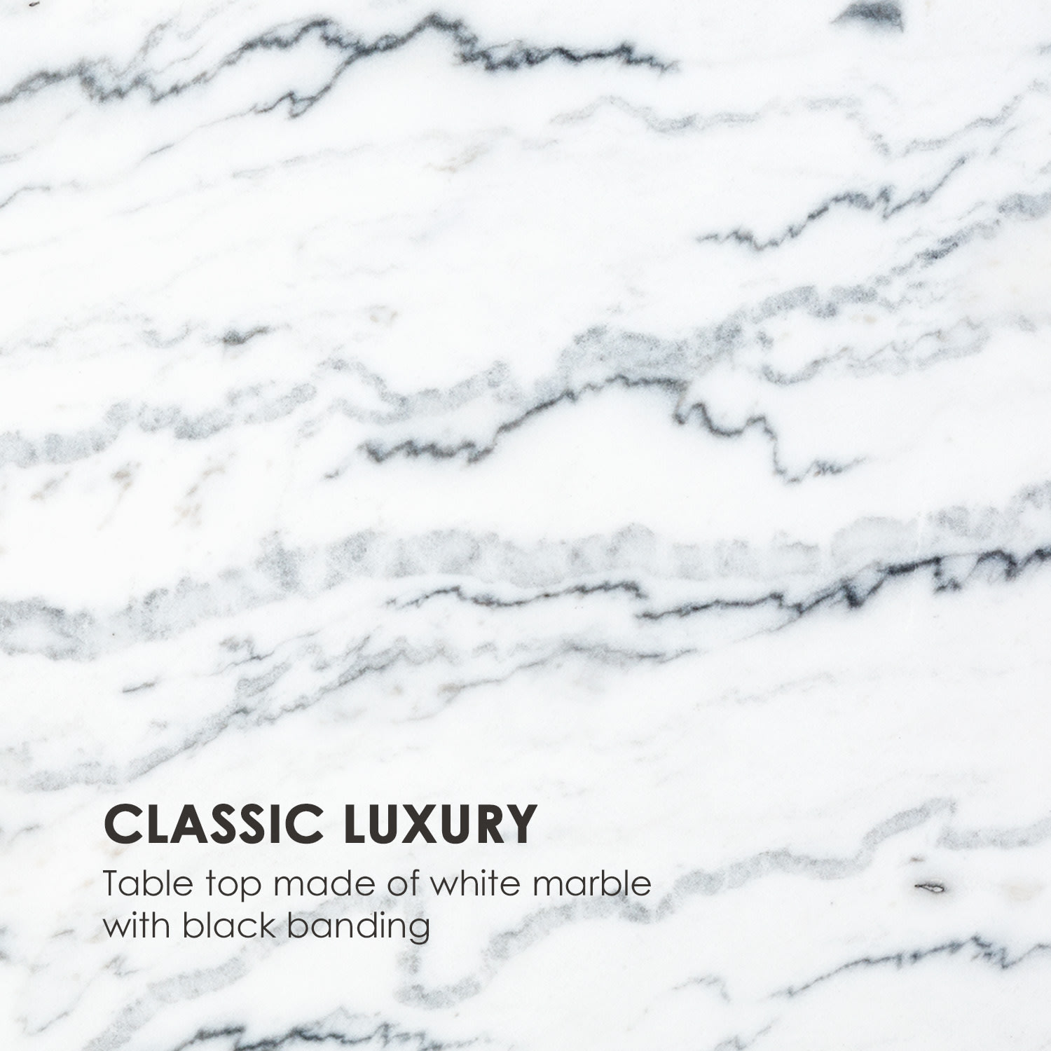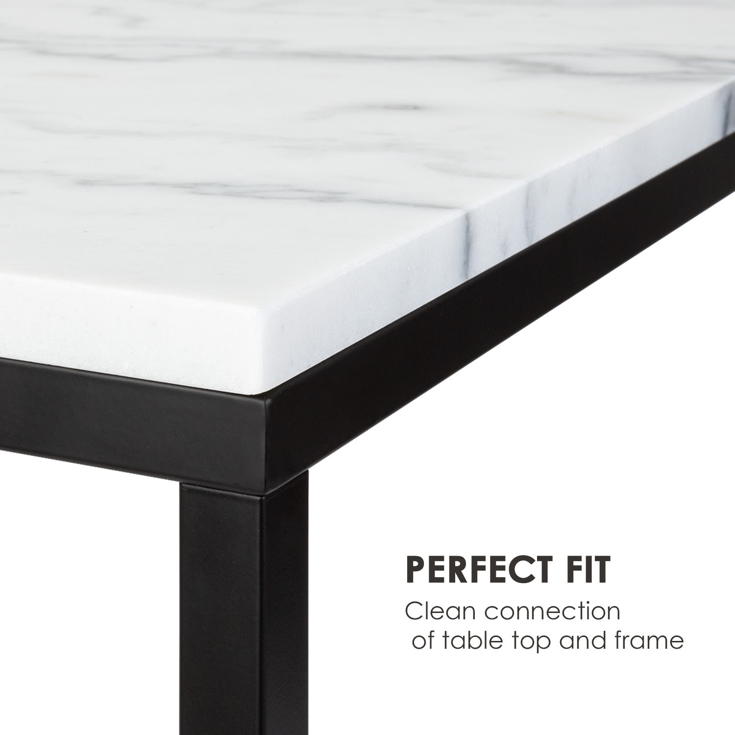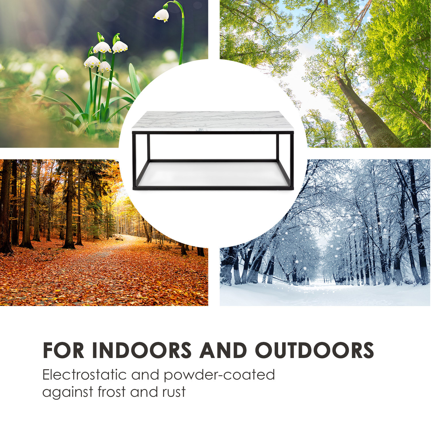 Klasicky moderný: konferenčný stolík Besoa Volos T100 kombinuje materiály, ktoré sa používali od čias antiky, s moderným dizajnom, a svojou eleganciou obohacuje každú miestnosť.Príručný stolík Besoa Volos T100 s nadčasovou eleganciou do interiéru aj exteriéru. Jeho hladká, leštená biela mramorová doska stola s čiernymi žilkami ti domov prinesie luxus z čias Kráľa Slnka. Elegantná doska stola je navyše podčiarknutá a stabilne upevnená vďaka čiernemu kovovému rámu z rúrok s hrúbkou 20 x 20 cm. Dvojitá ochrana je lepšia, a preto má rám stolíka Volos elektrostatický povlak aj práškovú povrchovú úpravu. To poskytuje rámu vysokú odolnosť voči poveternostným vplyvom, mrazu a vode – takže stolík Volos T100 sa dá bez problémov používať aj na balkóne, terase alebo v záhrade. Konferenčný stolík zostáva pritom z hľadiska tvarov moderný a jednoduchý, takže sa perfektne začlení do tvojej obývačky. Vďaka svojim praktickým rozmerom 100 x 40 x 50 cm je stolík Volos T100 ideálny ako konferenčný stolík alebo ako príručný odkladací stolík.Klasické materiály v modernej podobe: konferenčný stolík Besoa Volos T100.