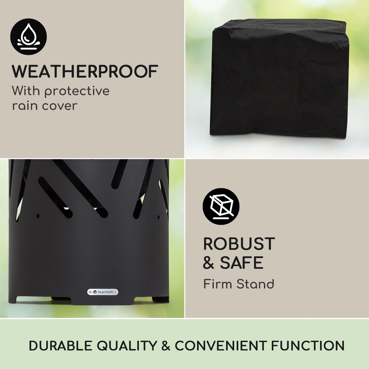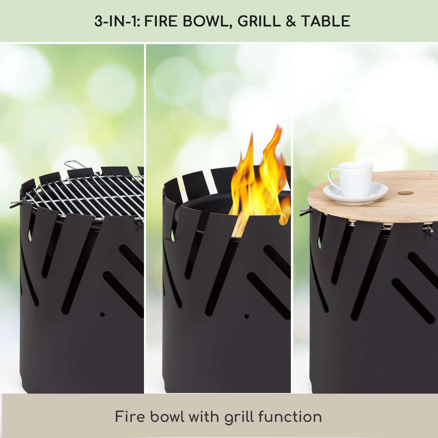 Vychutnajte si šťavnaté vyprážané pochúťky s rodinou a priateľmi s ohniskom BlumfeldtCrown s funkciou grilu a stola a zažite neporovnateľnú atmosféru otvoreného ohňa pod hviezdnou oblohou. Pohľadné ohnisko s priemerom 46 cm je celé vyrobené z ocele a pôsobí atmosferickým dojmom vďaka pruhovanému vzoru, ktorý necháva jasne vyniknúť svetlo plameňov. Konštrukcia je chránená pred vodou a mrazom a vďaka hrúbke materiálu 3 mm je aj pomerne ľahká. Umiestnením grilovacieho roštu na vrchnú časť sa ohnisko premení na gril pre chutné pochúťky ako sú grilované klobásky, steaky, zeleninové špízy alebo dokonca grilovaný syr. A keď sa ohnisko alebo gril nepoužívajú, môžete na ne jednoducho položiť okrúhlu bambusovú dosku a užívať si praktický záhradný stôl. Súčasťou dodávky je aj praktický rošt na drevené uhlie, pohrabáč a odolná ochrana proti vplyvom počasia, ktorá záhradné príslušenstvo 3 v 1 vždy ochráni pred vetrom a poveternostnými vplyvmi.Ohnisko s funkciou grilu a stola blumfeldt Crown: Útulná záhradná atmosféra a lahodný pôžitok z praskania grilu s výškovo nastaviteľným grilovacím roštom.