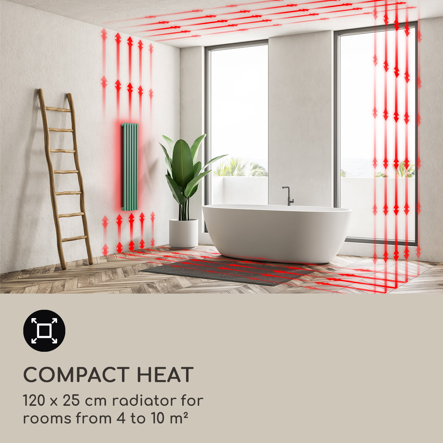 Blumfeldt Delgado, 120 x 25, radiátor, kúpeľňový radiátor, rúrkový radiátor, 508W, teplá voda, 1/2 – Kúpiť