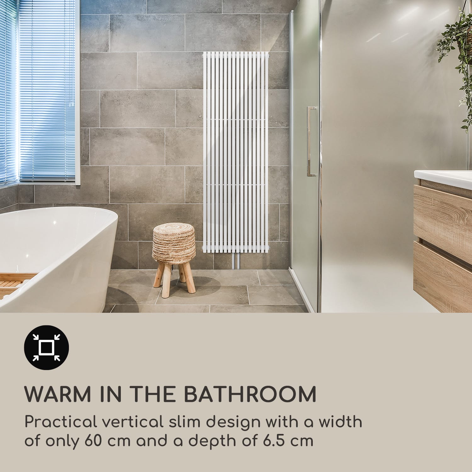 Útulné teplo pre domácnosť v modernom dizajne: radiátor Delgado 180 x 60 od Blumfeldt nielenže prináša do kúpeľne príjemnú teplotu, ale aj pekne vyzerá.Rúrkový radiátor Delgado 180 x 60 od Blumfeldt jednoducho integrujete do existujúceho teplovodného alebo diaľkového vykurovacieho systému a funguje aj s elektrickým ponorným ohrievačom alebo elektronickým termostatom. Poskytuje spoľahlivé a rovnomerné teplo v miestnostiach od 8 do 20 m². Pripojenie je veľmi jednoduché: konštrukcia 2 v 1 umožňuje pripojenie v strede aj na bočných rúrkach. Vďaka tomu dokáže Delgado optimálne reagovať na mnohé konštrukčné podmienky. Potrebné nástenné konzoly sú tiež priamo súčasťou balenia. Stabilný systém rúrok z práškovo lakovaného kovu optimálne vedie a rozvádza teplo až do 70 °C. Vďaka 16 vertikálnym vykurovacím trubiciam má tiež optimálne zväčšenú plochu a dosahuje tak tepelný výkon až 1065 W.Vďaka špeciálnemu vertikálnemu dizajnu so šírkou 60 cm a hĺbkou 6,5 cm sa dokonale hodí do všetkých miestností s obmedzeným priestorom alebo bez neho. Vďaka medzerám medzi 16 rúrkami sa radiátor veľmi jednoducho čistí. Útulné teplo priamo po sprche alebo kúpeli s radiátorom Delgado 180 x 60 od Blumfeldt – štýlový zážitok.