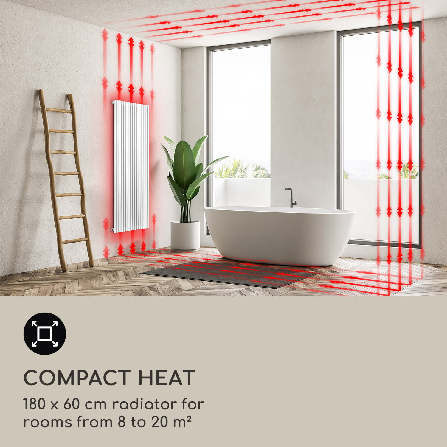Blumfeldt Delgado, 180 x 60, radiátor, kúpeľňový radiátor, rúrkový radiátor, 1065W, teplá voda, 1/2 – Kúpiť