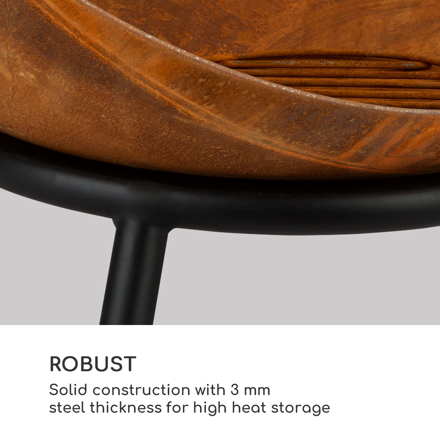 blumfeldt Fireball Rust je ohnisko navrhnuté v Berlíne, ktoré prináša skutočnú romantiku táboráka až domov.Špecialitou pri zariadení Fireball Rust sú variabilné možnosti použitia: pri vodorovnom nastavení môžeš na záhrade zapáliť klasický táborák alebo môžeš polguľu nasmerovať priečne a vychutnať si hru plameňov vo svojom novom krbe na terase. Bez ohľadu na spôsob použitia prináša do tvojho domova ohnisko blumfeldt Fireball Rust so svojím ikonickým dizajnom oddych, útulnosť a nádych romantiky. Ohnisko a jeho plamene ti umožnia relaxovať a odpočinúť si po náročnom dni. Okrem toho je tvoj oheň pri diagonálnom použití chránený pred vetrom a môžeš si užiť príjemné teplo ešte lepšie.Aj bez horúcich efektov je ohnisko Fireball Rust od spoločnosti blumfeldt veľmi pôsobivé. Nádoba a stojan sú veľmi kvalitné a dobre spracované. Vďaka oceľovej stene s hrúbkou 3 mm je ohnisko Fireball Rust veľmi robustné. Tri nohy stojana zabránia prevráteniu a zabezpečujú bezpečné postavenie v tvojej záhrade alebo na terase. Dodávaný kryt proti dažďu chráni ohnisko pred vetrom a počasím. Jeho dizajn a rošt na popol sa postarajú o čisté a bezpečné horenie. Ak drevenému uhliu alebo polenám dochádza dych, môžeš im pomocou kutáča pomôcť znovu sa rozhorieť.S ohniskom Fireball Rust od spoločnosti blumfeldt sú príjemné hodiny vonku s priateľmi a rodinou zaručené.