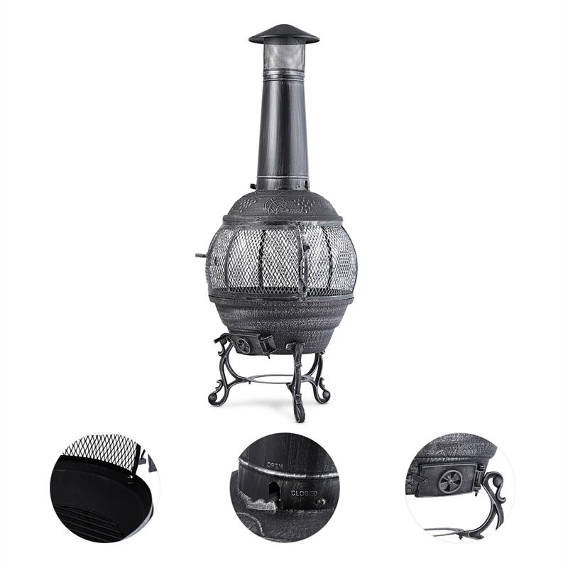 Urobme oheň! Keď sa na terase či v záhrade ochladí, je Blumfeldt Flavius záhradná pec pripravená postarať sa o teplé hodiny strávené v záhrade. S Blumfeldt Flavius záhradnou pecou si poriadne zakúrite: stabilná pec je kompletne zhotovená z liatiny odolnej voči zlomeniu a pevnej ocele a vyžaruje príjemné teplo. Jednoducho zapálite vo vnútri pece uhlie, drevo či drevené uhlie a dlhé hodiny si užívate teplo. Praktická vetracia klapka na spodku dopomáha ohňu rýchlo vzbĺknuť. 360° mriežka bráni lietaniu iskier a umožňuje zároveň fascinujúci pohľad na oheň zo všetkých strán. Vďaka 90 cm vysokému komínu stúpa dym rýchlo nahor a je odvedený, zatiaľ čo teplo z pece je šikovne rozdelené a odvedené do okolia. S vkusným vonkajškom v starožitnom dizajne rímskej pece nie len že Blumfeldt Flavius záhradná pec vykuruje, ale aj dodáva hodinám stráveným vonku jedinečnú atmosféru. Dekoratívne ozdoby a povrch v žiarivom striebristom tóne dizajnovo podčiarkujú prostredie. Vychutnávajte si jeseň a zimu príjemne v teple aj vonku: Blumfeldt Flavius záhradná pec poriadne zakúri ohňom aj svojím vzhľadom.