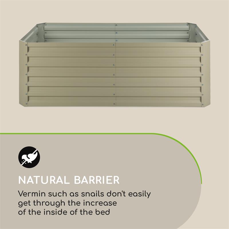 Chutne, čerstvo a z vlastného záhonu: S vyvýšeným záhonom Blumfeldt High Grow Straight si svoje denné porcie zeleniny dopestujete sami a terasy, dvory alebo záhradky sa premenia na zelené oázy. Tento okrasný vyvýšený záhon nielenže skrášli váš priestor, ale aj poskytne ideálne podmienky pre rast vašich rastlín. Pretože šťavnaté paradajky, sladké jahody, chrumkavé cukety a aromatické bylinky sa dajú jednoducho vypestovať vďaka optimálnym podmienkam rastu. Jednoročné rastliny a celoročná radosť z práce v záhrade: Pevná rámová konštrukcia záhradného záhonu je vyrobená z oceľového vlnitého plechu a je chránená pred poveternostnými vplyvmi špeciálnym 120 g/m² zinkovo-hliníkovým povrchom. Vďaka tomu odoláva High Grow Straight vetru a počasiu po celý rok. Pestré potešenie a zdravé pochúťky: S Blumfeldt High Grow Straight budú dosiahnuté optimálne podmienky rastu. Umožňuje to pomerne vyššie výnosy ako ploché záhony. Záhradníci sa potešia z pohodlia pri státí a z ochrany svojho chrbta. Pracovná výška 60 cm sa okrem toho ukazuje ako prekážka pre škodcov, akými sú slimáky. Vďaka objemu 970 litrov je možné umiestniť do vyvýšeného záhonu viaceré humusové vrstvy, takže hneď možno použiť ako kompostér: Stačí len vložiť zelený odpad medzi vrstvy zeme – to priláka nielen pôdu prekyprujúce dážďovky, ale tiež sa tým trvalo poskytujú záhonu čerstvé živiny. Čas všetko urýchliť: S vyvýšeným záhonom Blumfeldt High Grow Straight môže každý objaviť svoj záhradnícky talent. Dostupné farby: béžová, strieborná (produkt: 10032316)