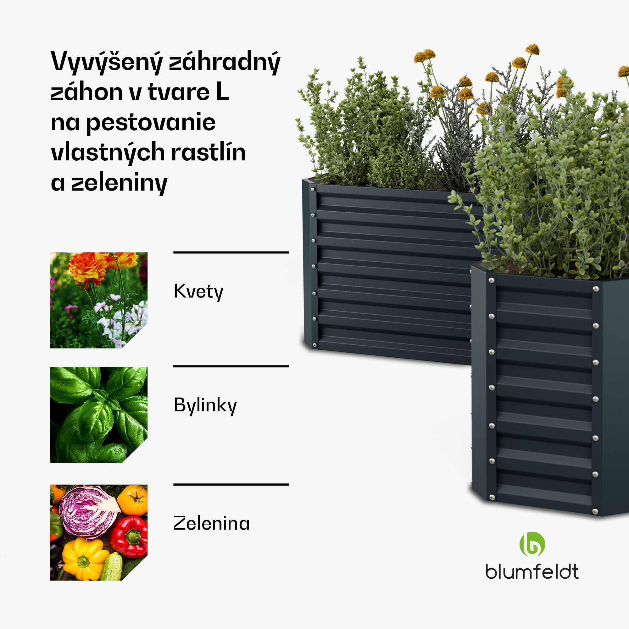 Blumfeldt High Grow vyvýšený záhon, tvar L, odolný voči poveternostným vplyvom, odolný voči korózii, robustný, 742 L – Kúpiť
