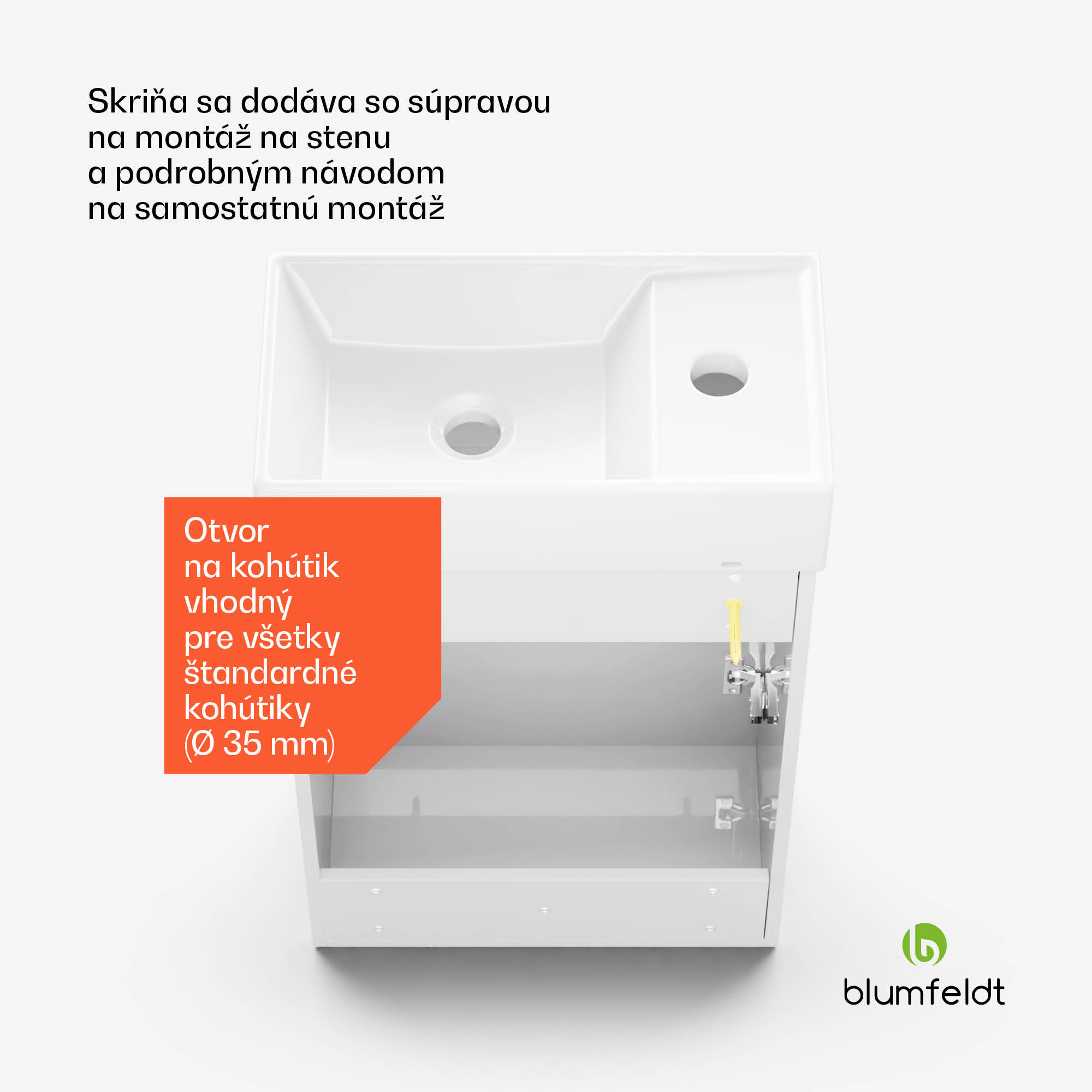 Blumfeldt Johnstone je štýlová a funkčná kúpeľňová skrinka, ktorá vám pomôže udržať v kúpeľni poriadok. So šírkou 40 cm je Johnstone ideálna do menších kúpeľní alebo ako ďalší úložný nábytok. Skrinka je vyrobená z vysokokvalitného materiálu odolného voči vlhkosti, a preto je ideálna na použitie vo vlhkom prostredí, ako je kúpeľňa. Dizajn skrinky Johnstone je elegantný a hodí sa do každého interiéru. Skrinka má keramické umývadlo, ktoré sa nielen ľahko čistí, ale je aj odolné voči škvrnám a poškriabaniu. Vďaka závesom so Soft-Close je otváranie a zatváranie skrinky nehlučné. Skrinka vám ponúka aj praktické možnosti úložného priestoru s priehradkou na kúpeľňové náčinie, aby ste v ňom mali prehľad. Skrinka pod umývadlo Blumfeldt Johnstone sa dodáva so zariadením pre montáž na stenu, ktoré umožňuje jednoduchú a bezpečnú inštaláciu. Vďaka jasným a podrobným návodom je montáž hračkou. Upozorňujeme však, že vodovodný kohútik nie je súčasťou dodávky.