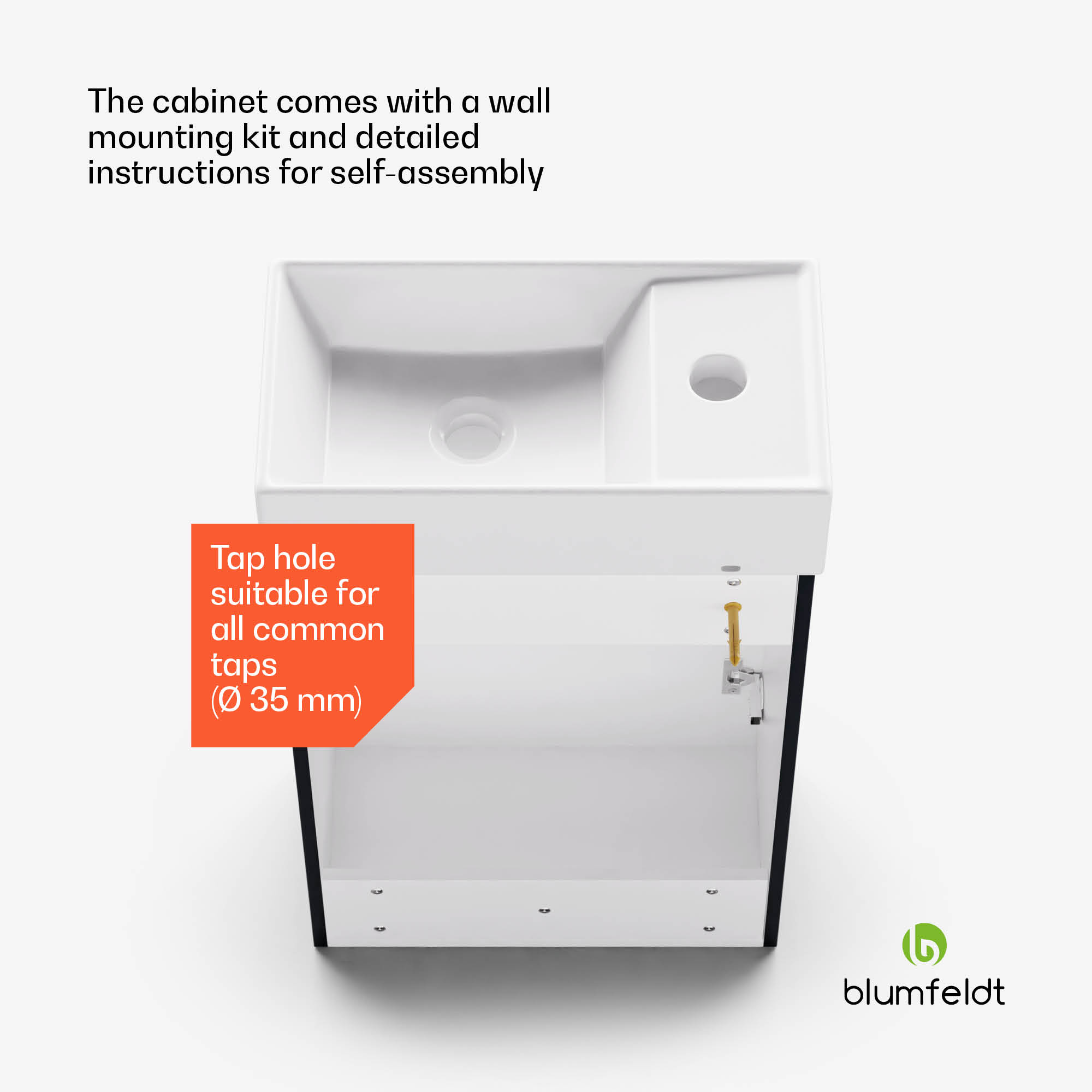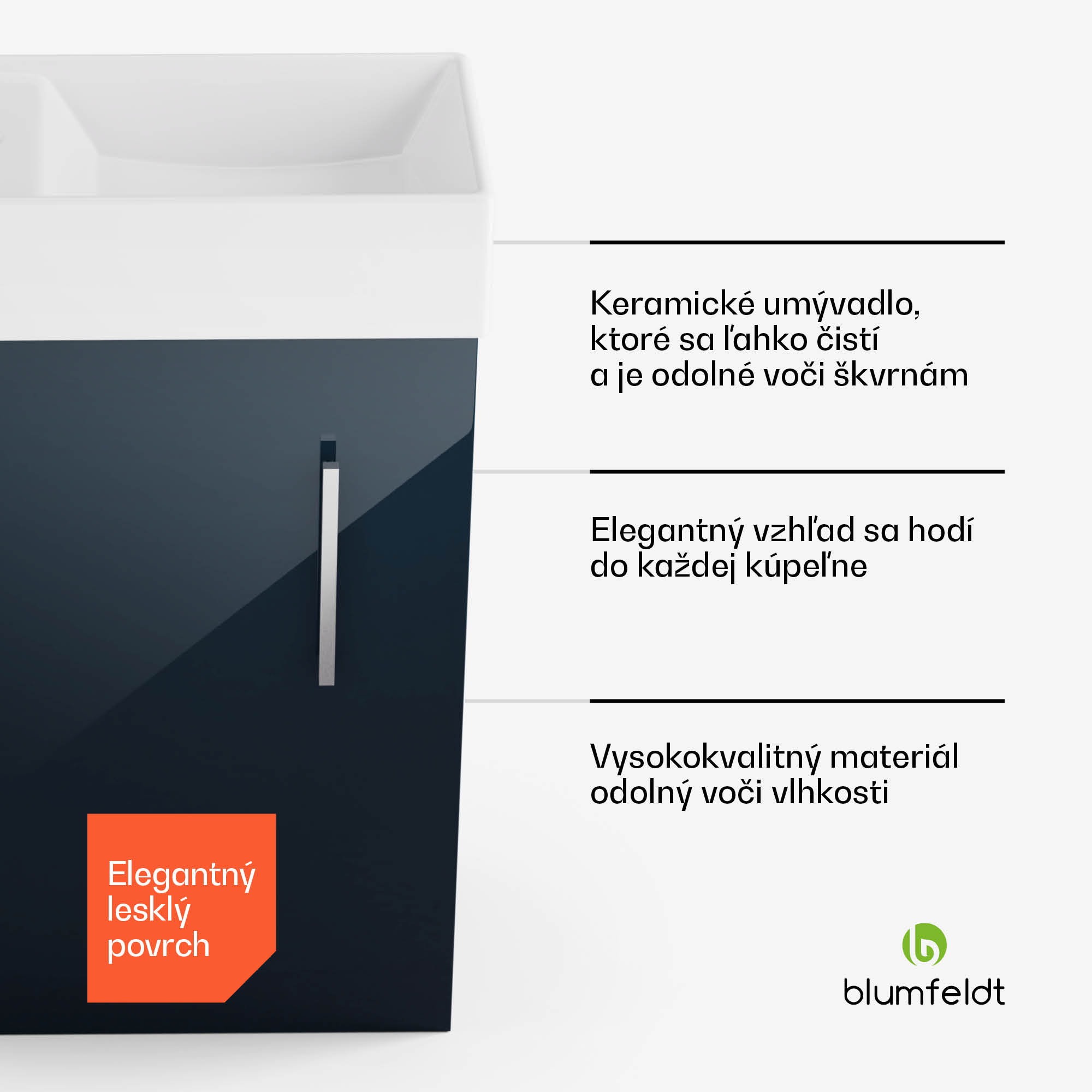 Blumfeldt Johnstone je štýlová a funkčná kúpeľňová skrinka, ktorá vám pomôže udržať v kúpeľni poriadok. So šírkou 40 cm je Johnstone ideálna do menších kúpeľní alebo ako ďalší úložný nábytok. Skrinka je vyrobená z vysoko kvalitného materiálu odolného voči vlhkosti, vďaka čomu je ideálna na použitie vo vlhkom prostredí, ako je kúpeľňa. Dizajn modelu Johnstone je elegantný a hodí sa do každého interiéru. Skrinka je vybavená keramickým umývadlom, ktoré sa nielen ľahko čistí, ale je tiež odolné voči škvrnám a poškriabaniu. Vďaka závesom so Soft-Close je otváranie a zatváranie skrinky nehlučné. Skrinka vám ponúka aj praktické možnosti úložného priestoru s priehradkou na kúpeľňové náradie, aby ste v ňom mali prehľad. Skrinka po umývadlo Blumfeldt Johnstone sa dodáva so zariadením pre montáž na stenu, ktoré umožňuje jednoduchú a bezpečnú inštaláciu. Vďaka jasným a podrobným návodom je montáž hračkou. Upozorňujeme však, že kohútik nie je súčasťou balenia.