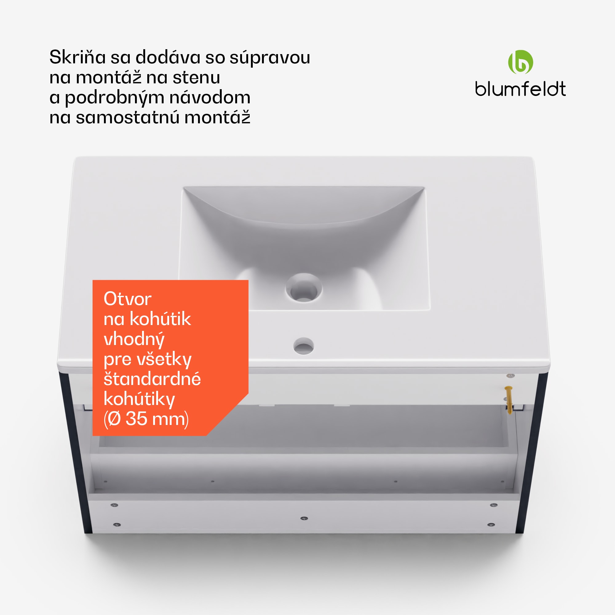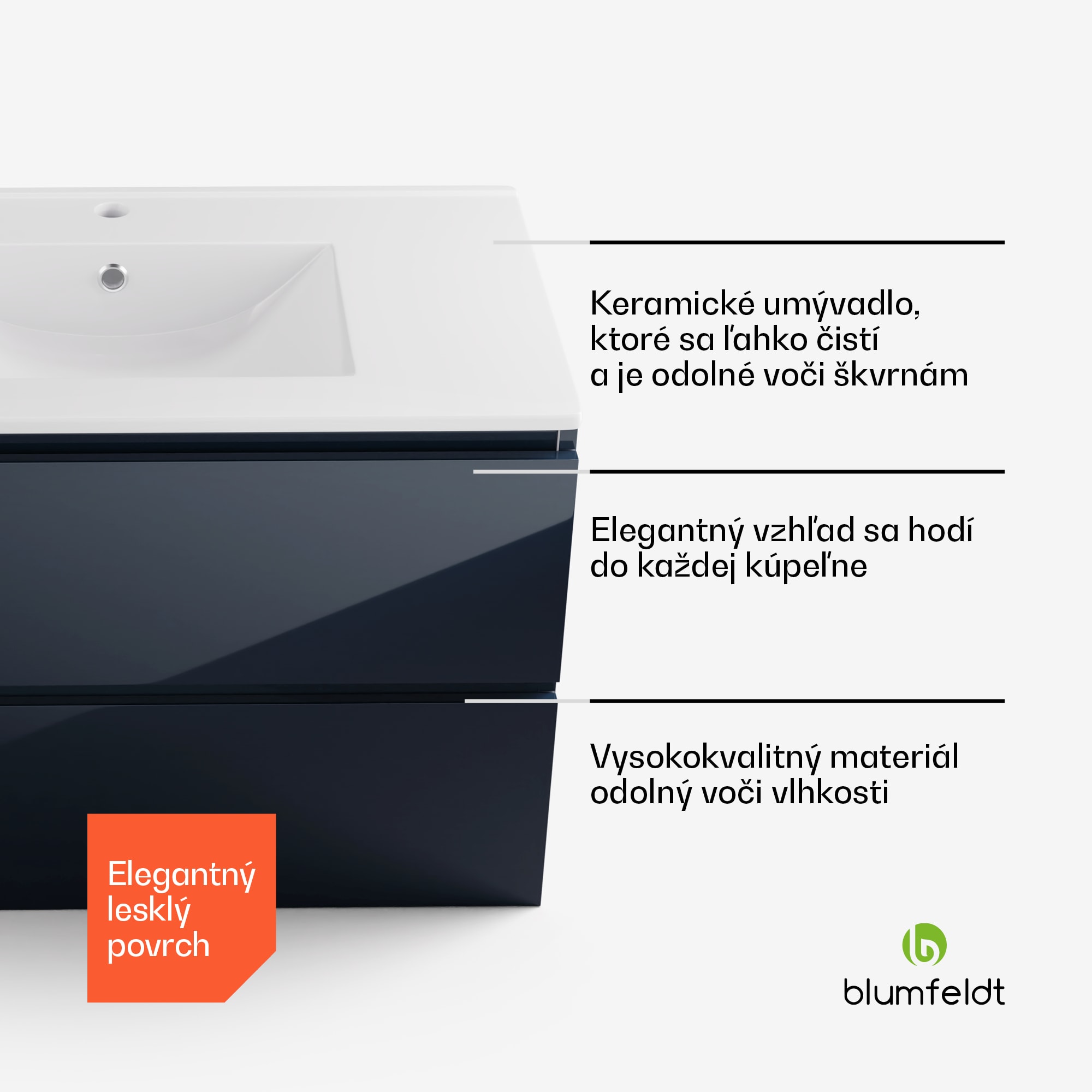 Sada Blumfeldt Johnstone je kvalitné a štýlové umývadlo so skrinkou do vašej kúpeľne. Vďaka svojim sofistikovaným funkciám a vysokokvalitným materiálom upúta pozornosť v každej miestnosti. Skrinka pod umývadlo Blumfeldt Johnstone so šírkou 80 cm ponúka dostatok priestoru na umiestnenie umývadla a všetkého potrebného náčinia. Má tiež dve priestranné zásuvky, do ktorých môžete pohodlne uložiť kozmetické prípravky, uteráky a všetko ostatné, čo v kúpeľni potrebujete. Vďaka závesom so Soft-Close je otváranie a zatváranie skrinky nehlučné – ideálne na zabránenie rušivým zvukom a vytvorenie príjemnej atmosféry v kúpeľni. Skrinka pod umývadlo je nielen funkčná, ale aj estetická. Vďaka vysoko lesklej povrchovej úprave dokonale zapadne do dizajnu každej kúpeľne a dodá jej elegantný vzhľad. Keramické umývadlo Johnstone sa nielen ľahko čistí, ale je aj mimoriadne trvanlivé a odolné voči škvrnám a poškriabaniu. Skrinka po umývadlo Blumfeldt Johnstone sa dodáva so zariadením pre montáž na stenu, ktoré umožňuje jednoduchú a bezpečnú inštaláciu. Súčasťou dodávky je aj podrobný návod na inštaláciu, ktorý zaručuje bezproblémovú inštaláciu. Upozorňujeme však, že kohútik nie je súčasťou balenia.