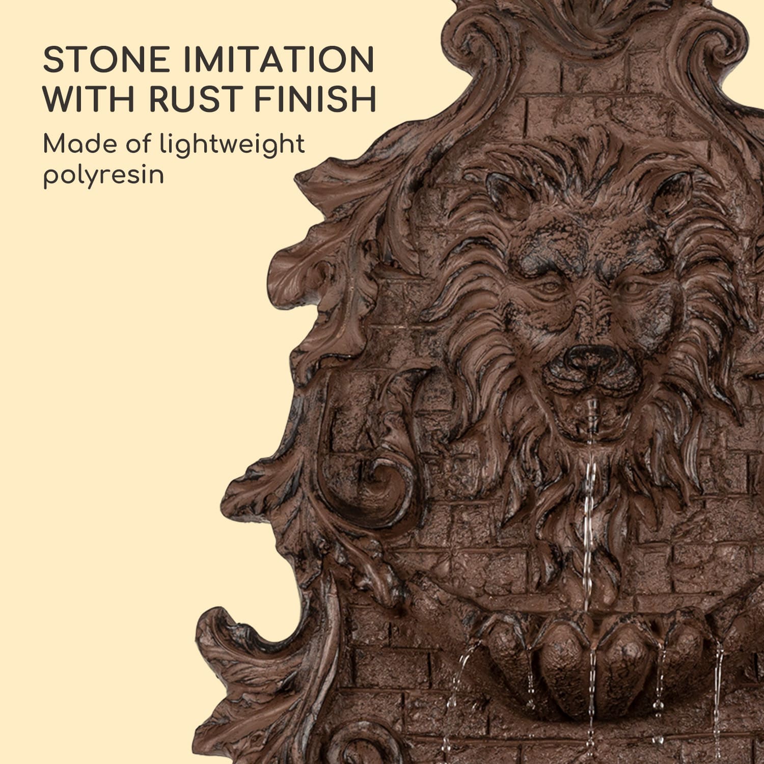 Ako levia hlava, ktorá chrlí vodu, zdobí solárna fontána blumfeldt Leo holé steny nádherným spôsobom – vnútri aj vonku. Vďaka imitácii prírodného kameňa, ornamentom, rustikálnej hrdzavej povrchovej úprave a starogréckemu vzhľadu prenáša pôsobivo svoje okolie späť do staroveku.Veľkolepá, no úsporná: exkluzívna nástenná fontána získava svoju energiu výlučne zo slnka a nepotrebuje vodovodnú prípojku, aby premenila tvoju záhradu alebo terasu na grécku vodnú krajinu. So solárnou energiou poháňa malé čerpadlo Loopflow Concept, ktoré umožní za hodinu prúdiť 200 litrom vody vždy znovu dookola cez solárnu fontánu. Externý solárny panel môžeš umiestniť optimálne na slnko vďaka pripojenému hrotu do zeme a káblu s dĺžkou 5 metrov. Dodávaná lítiová batéria uchováva energiu na nepretržitú prevádzku. Malý LED veniec so 4 bielymi svetlami sa postará o mystické osvetlenie v šere alebo v noci. Rozžiari žblnkajúcu vodu a vytvára vo vode trblietavé odlesky. Osvetlenie je okrem toho ekonomické v spotrebe, pretože sa zapína automaticky v prítmí a pri dopade svetla sa opäť vypne.Ekonomická a ekologická solárna fontána Leo od spoločnosti blumfeldt pripomína staroveké Grécko a prekvapuje svojím mýtickým vyžarovaním. Relaxuj pri jemnom žblnkote, zatiaľ čo si voda hľadá cestu z papule leva do umelecky zdobenej, osvetlenej zbernej nádoby.