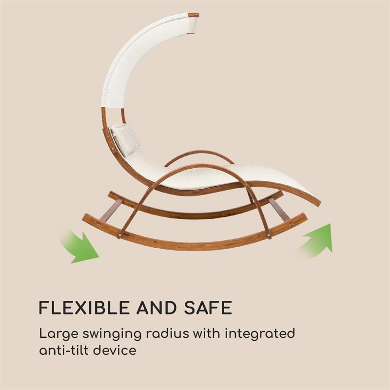 Čistá relaxácia! Či už na balkóne, na terase alebo v záhrade – užite si pocit ako na dovolenke a oddýchnite si s hojdacím ležadlom Blumfeldt Maurtitius. V horúcich letných dňoch poskytuje ľahko nastaviteľná slnečná strieška z polyesteru spoľahlivú ochranu pred UV žiarením a slnkom. Okrem toho podporuje ergonomicky tvarované ležadlo prirodzený tvar chrbtice a ponúka relaxačný priestor z príjemného materiálu ComfortMesh, ktorý je nielen priedušný, odolný voči poveternostným vplyvom, ale vďaka svojej štruktúre sa tiež mimoriadne ľahko udržiava a čistí. Pevný rám z fínskeho borovicového dreva je spoľahlivo chránený pred vonkajšími vplyvmi svojou vodovzdornou lazúrou a poskytuje maximálnu nosnosť 180 kg. Jemne sa kývajúce miesto odpočinku sa vďaka svojmu zvlnenému dizajnu perfektne začlení do každého záhradného prostredia a zaujme svojou jednoduchou eleganciou. Hojdacie ležadlo Mauritius od spoločnosti Blumfeld: ideálna komfortná zóna pre všetkých, ktorí chcú obohatiť svoj každodenný život dovolenkovými momentmi.