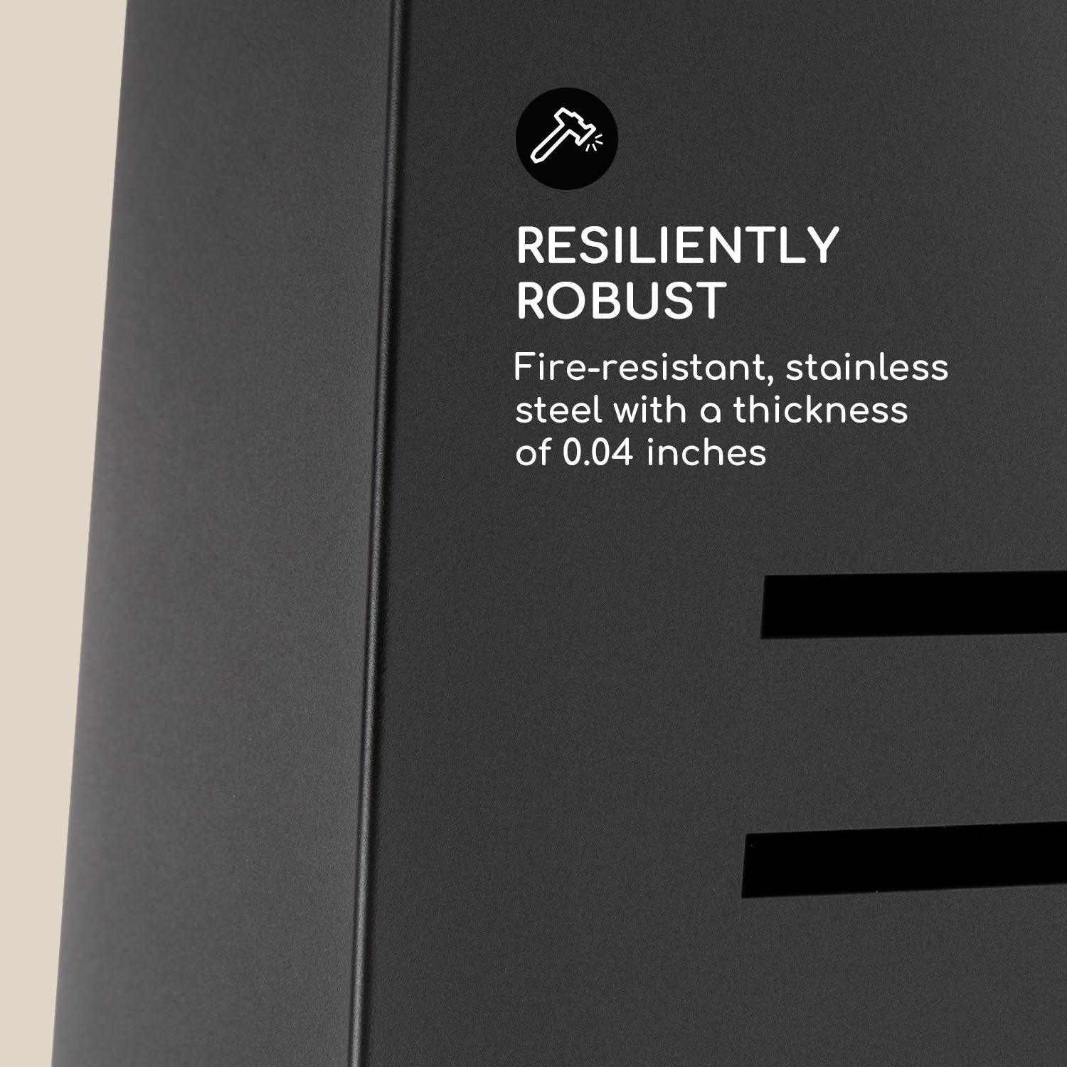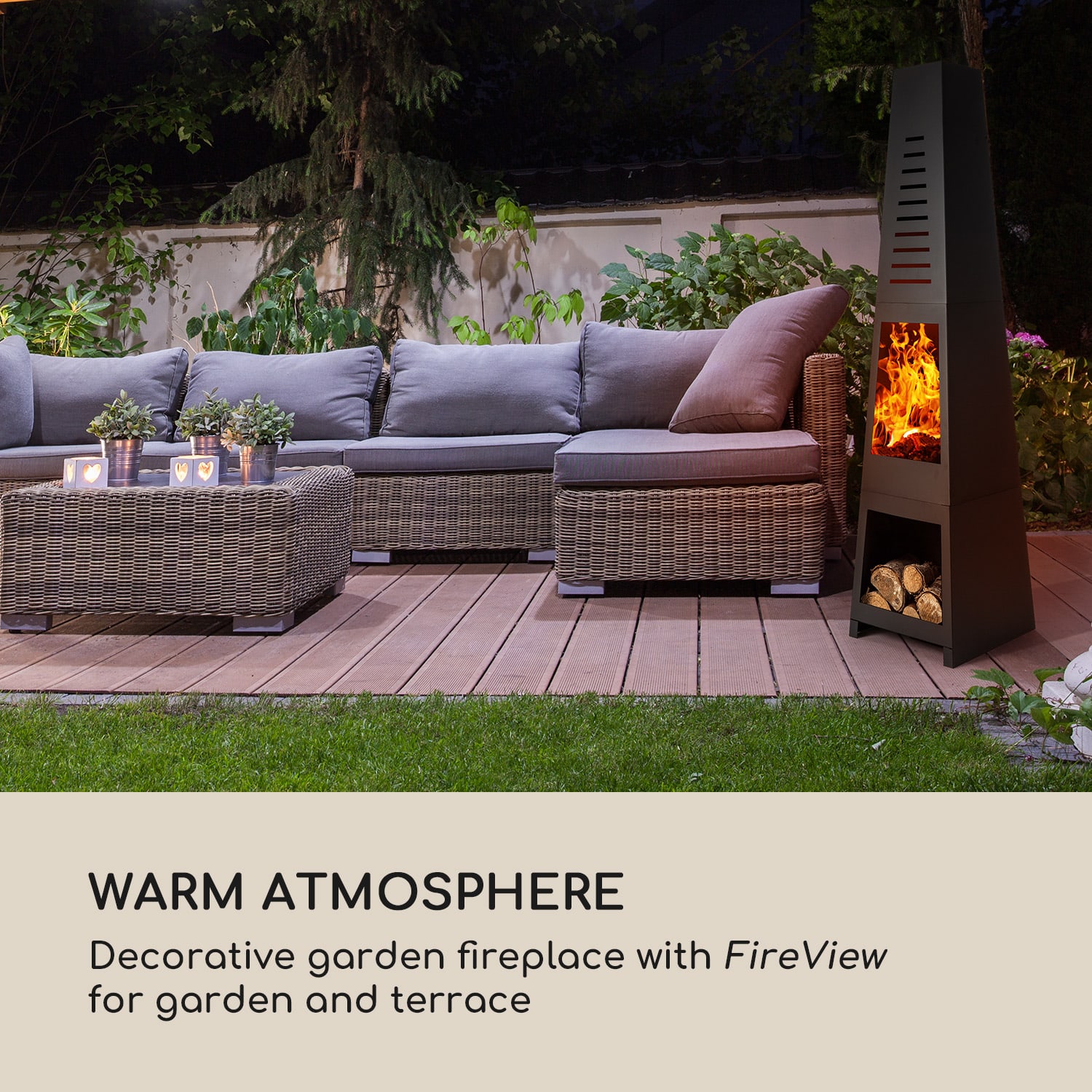 Keď sa na terase alebo v záhrade ochladí, záhradný krb Blumfeldt Monument prináša do chladných hodín príjemné teplo a očarí Vás svojím otvoreným ohňom. Stabilný terasový krb je vyrobený kompletne z nehorľavej ušľachtilej ocele. Veľkou rýchlosťou šíri príjemné teplo a ponúka prekrásne plamene vďaka FireView: stačí zapáliť uhlie, drevo alebo drevené uhlie vo vnútri a môžete si vychutnávať teplo a oheň po celé hodiny. Vďaka svojmu puristickému zovňajšku s moderným dizajnom záhradný krb Monument nie len že výkonne ohrieva, ale hodinám stráveným v prírode dodáva aj jedinečnú atmosféru a na každom mieste sa z neho stane decentný pútač pozornosti. Úložný priestor na drevené polená pritom nevyzerá iba dobre, ale postará sa aj o to, aby drevo na priloženie bolo vždy po blízku. Užívajte si jeseň aj zimu útulne v prírode: záhradný krb Monument od spoločnosti Blumfeldt je obohatenie pre každú záhradu a každú terasu.