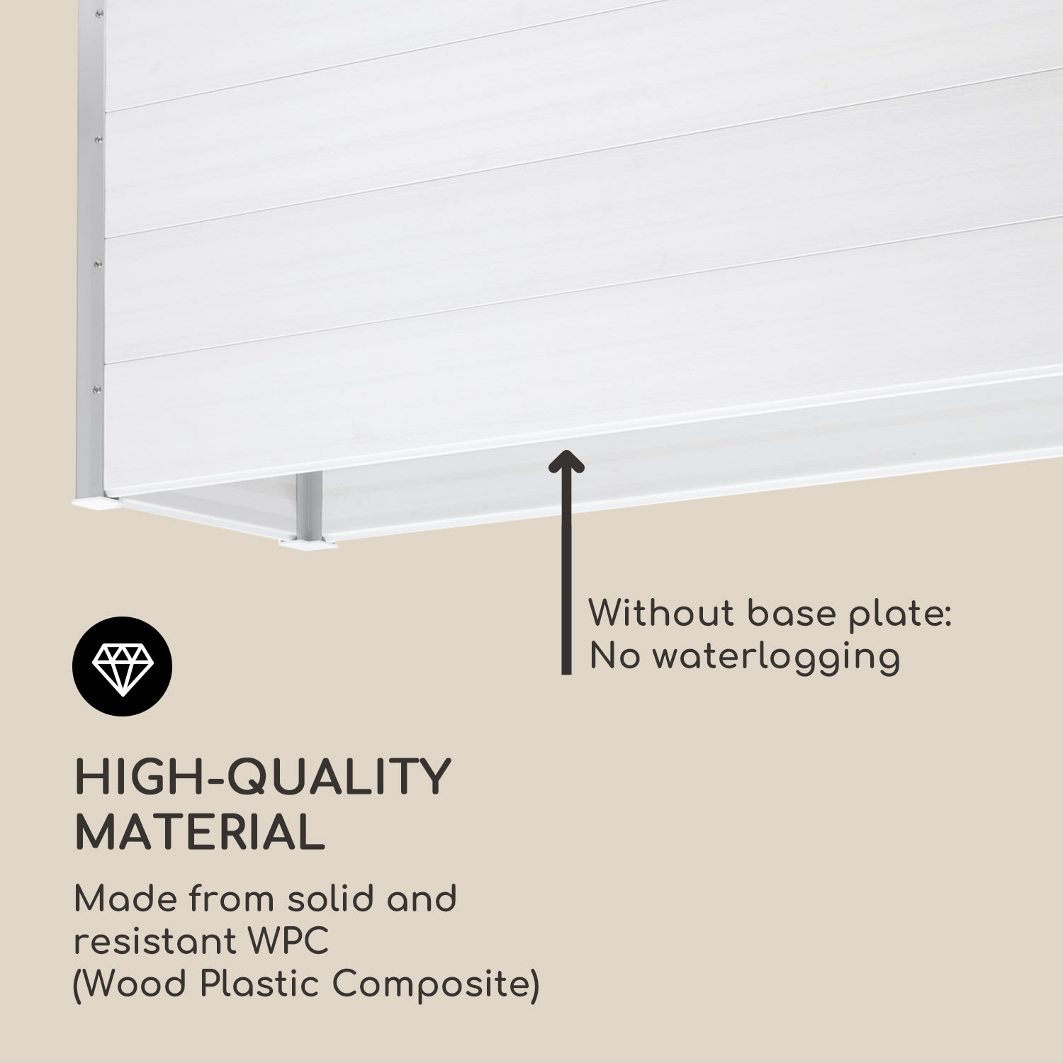 Vypestujte si vlastné: Teraz so záhradným záhonom Blumfelfd Nova Grow Vysaďte ovocie, zeleninu, bylinky a kvety v pohodlnej pracovnej výške a premeňte záhrady alebo terasy na živé oázy sviežosti._x000D_Stabilný záhradný záhon je vyrobený z WPC kompozitu (Wood Plastic Composite) odolného voči poveternostným vplyvom a vďaka ochrane proti UV žiareniu, korózii a mrazu je ideálny na trvalé použitie v exteriéri. Vďaka svojmu prírodnému drevenému vzhľadu sa konštrukcia ideálne hodí do každej záhrady a terasy a pôsobivo zvýrazní svoje okolie vďaka farebnému prevedeniu v jednoduchej bielej farbe. Pri výške 91 cm má Nova Grow mimoriadne pohodlnú výšku, ktorá pri sadení a zbere šetrí chrbticu, pretože sa nemusíte toľko ohýbať. Okrasný vyvýšený záhon sa dá zostaviť za krátky čas a vďaka hliníkovým výstuhám na všetkých 4 rohových častiach sľubuje mimoriadne vysokú robustnosť a stabilitu._x000D_Čas na sviežu zeleň a osviežujúce farby: Vysaďte si vlastný okrasný vyvýšený záhon s Blumfelfd Nova Grow a vychutnajte si domáce bylinky a kvety, ako aj chutné ovocie a zeleninu._x000D__x000D_Upozorňujeme, že vyvýšený záhon sa dodáva bez základovej dosky.