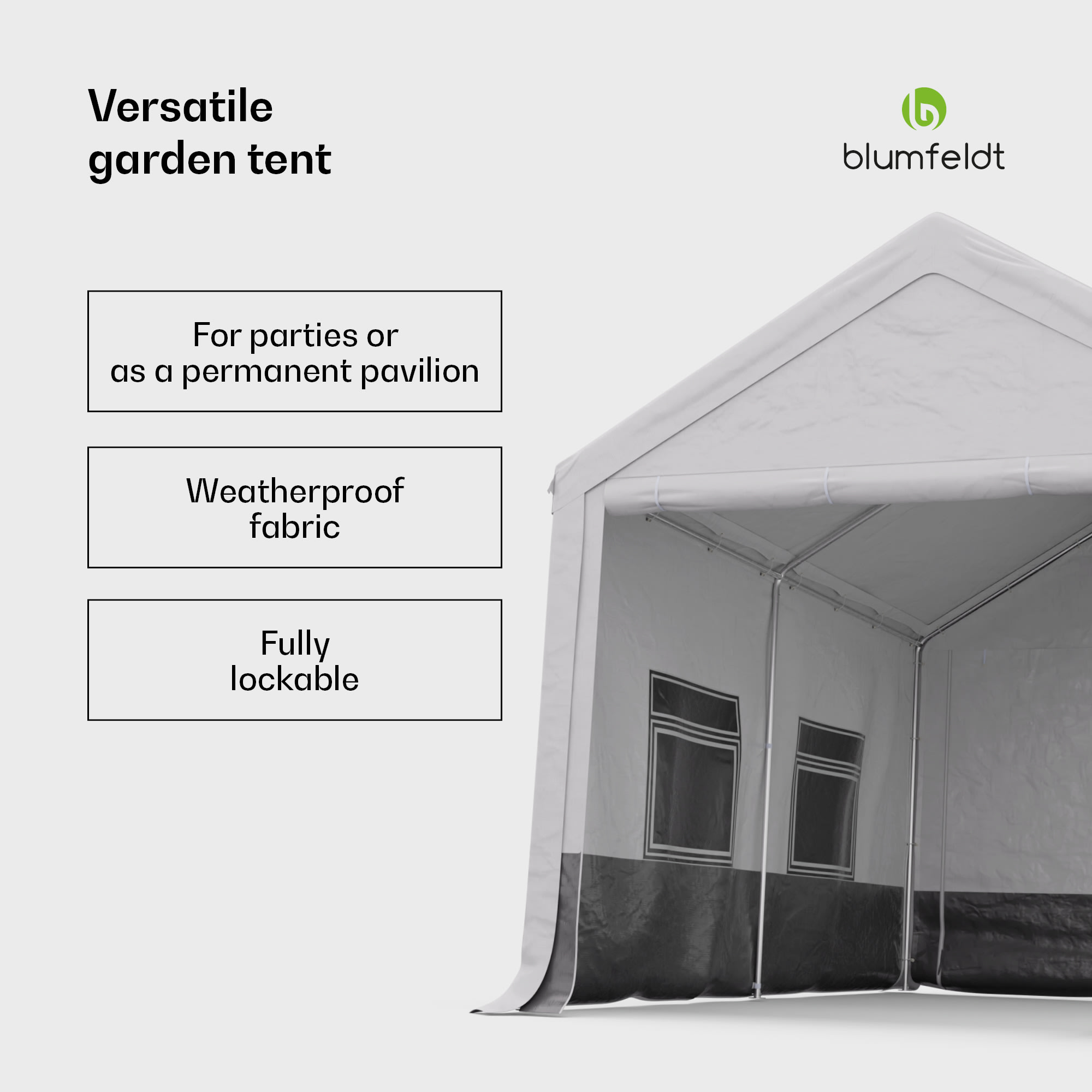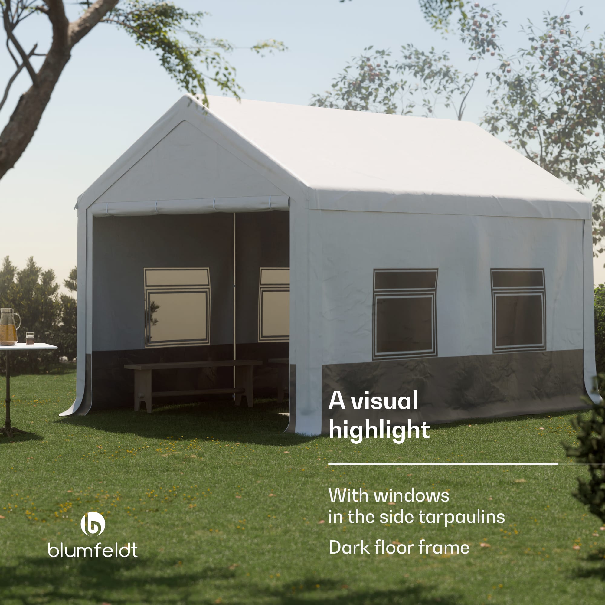 Blumfeldt Party Haven, stan, 400 x 296 x 280 cm, odolný voči poveternostným vplyvom, oceľový rám, jednoduchá montáž, s bočnými stenami