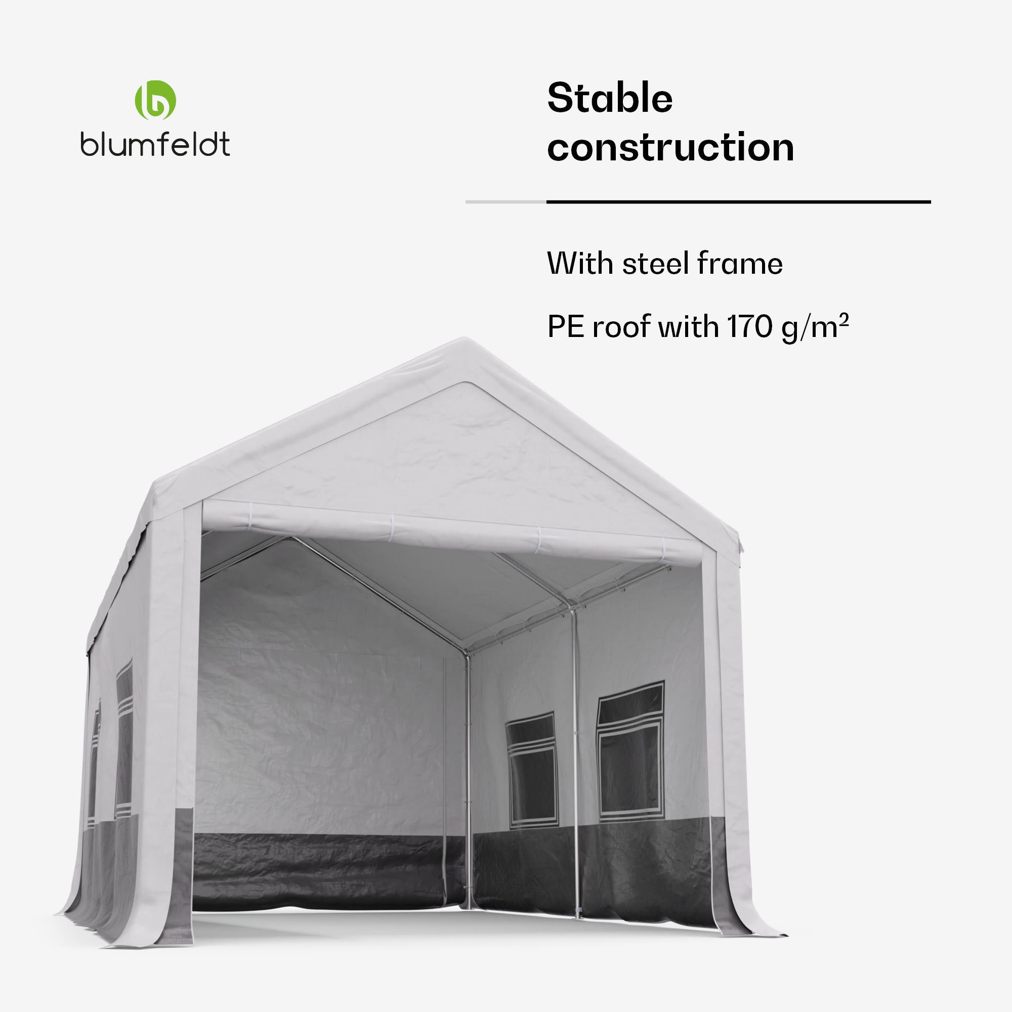 Záhradný stan na všetky príležitosti: Stan Blumfeldt Party Haven je nevyhnutnou súčasťou vonkajších narodenín, rodinných grilovačiek alebo večerných koktailov s priateľmi. Robustný párty stan od Blumfeldt je vyrobený z kvalitného materiálu a vďaka pevnej oceľovej konštrukcii odolá nárazom vetra a nepriaznivému počasiu. Strecha z PE s gramážou 170 g/m² a bočné steny z PE s gramážou 130 g/m² sú vyrobené z tkaniny odolnej voči poveternostným vplyvom. Záhradný stan poskytuje tieň počas horúcich slnečných dní, ochranu pred ľahkým dažďom a dokonca aj bariéru proti otravnému hmyzu. Ideálne na vonkajšie aktivity a párty bez ohľadu na počasie.Záhradný stan od spoločnosti Blumfeldt sa mimoriadne ľahko stavia. Základný rám možno zostaviť v niekoľkých jednoduchých krokoch pomocou jednoduchých zásuvných spojov. Strecha a bočné plachty sa potom pripevnia k oceľovému rámu. Všetky potrebné diely sú už súčasťou balenia, takže miesto na oslavu možno zriadiť aj spontánne v záhrade. Stan Party Haven od Blumfeldt je nielen mimoriadne praktický, ale aj skutočne pútavý. Či už na oslavu, alebo ako trvalá súčasť vonkajšieho priestoru. Atraktívny dizajn vnesie do vašej záhrady nádych elegancie. Základný rám tmavej farby je mimoriadne praktický. Mierne znečistenie preto nie je hneď viditeľné a párty stan vyzerá vždy čisto.