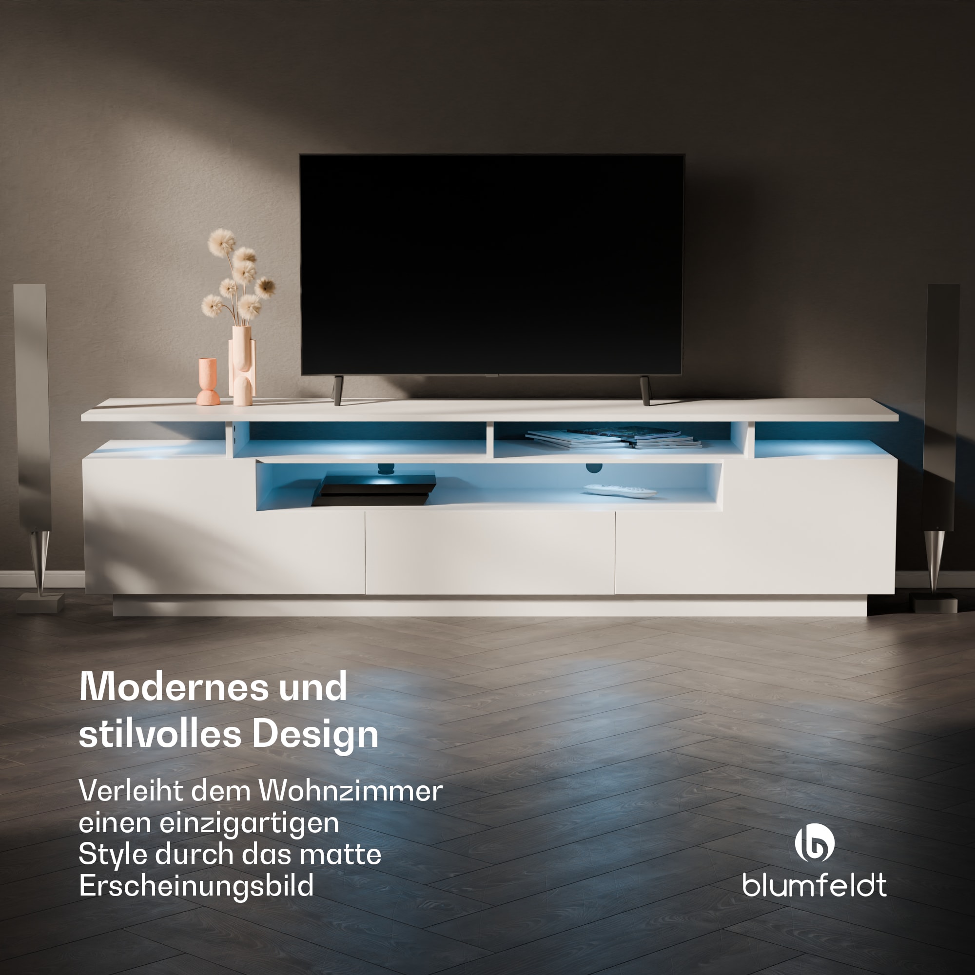 S TV skrinkou blumfeldt Perth Lowboard nedostanete len kus nábytku, ale aj vyjadrenie moderného štýlu a funkčnosti vášho domova. Lowboard blumfeldt Perth zaujme moderným dizajnom s matnou doskou a laminátom, ktorý je nielen štýlový, ale aj robustný. Tento kus nábytku upúta pozornosť vo vašej obývačke a dodá miestnosti jedinečnú estetiku.Integrované LED osvetlenie vám umožní upraviť atmosféru podľa vašich preferencií. Variabilný výber farieb a štyri rôzne režimy osvetlenia vytvárajú individuálnu svetelnú náladu pre každú príležitosť TV skrinka blumfeldt Perth s tromi veľkorysými úložnými úrovňami ponúka dostatok miesta na multimediálne zariadenia, knihy a dekorácie.Montáž je jednoduchá a nekomplikovaná. Vďaka jasnému návodu a premyslenej konštrukcii je váš lowboard pripravený na použitie už za 20 minút. S rozmermi 195 x 50 x 33 cm sa perfektne hodí do vašej obývačky a ponúka maximálnu nosnosť 30 kg pre váš televízor.