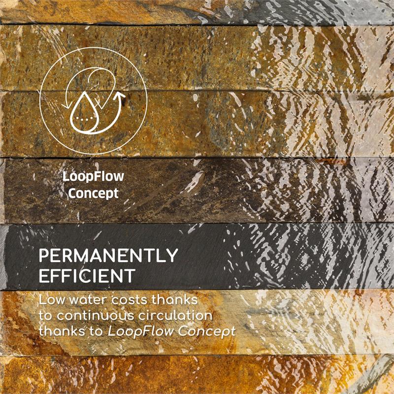 Jednoducho vypnúť a nasávať novú energiu: záhradná fontána Blumfeldt Raincastle je zurčiaci prameň novej energie a záhradu, balkón či byt premení na útočisko uvoľnenia. Voda osvetlená dvanástimi LEDkami zurčí v neustálom prúde stekajúc zvislou plochou a postará sa o meditatívne uvoľnenie. Fontána Raincastle zhotovená z pozinkovaného kovu pritom nie je iba mimoriadne masívna a odolná, ale klamlivo vzbudzuje dojem, že sa pozeráte na fontánu z tehál. Aby sa vodná hra nikdy neunavila, pumpa s výkonom 8 W zabezpečí neustálu cirkuláciu vody. Vďaka extra dlhému sieťovému káblu s dĺžkou 10 m je možné záhradnú fontánu voľne umiestniť, všade si nájde perfektné miesto. Prináša oddych do záhrady aj bytu: záhradná fontána Raincastle od spoločnosti Blumfeldt.