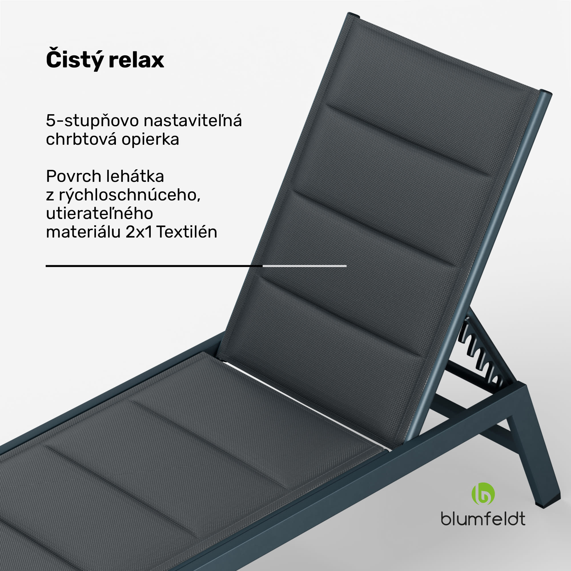 Blumfeldt Renazzo Lounge ležadlo, nosnosť 120 kg, 5-stupňové, vodoodpudivé – Kúpiť
