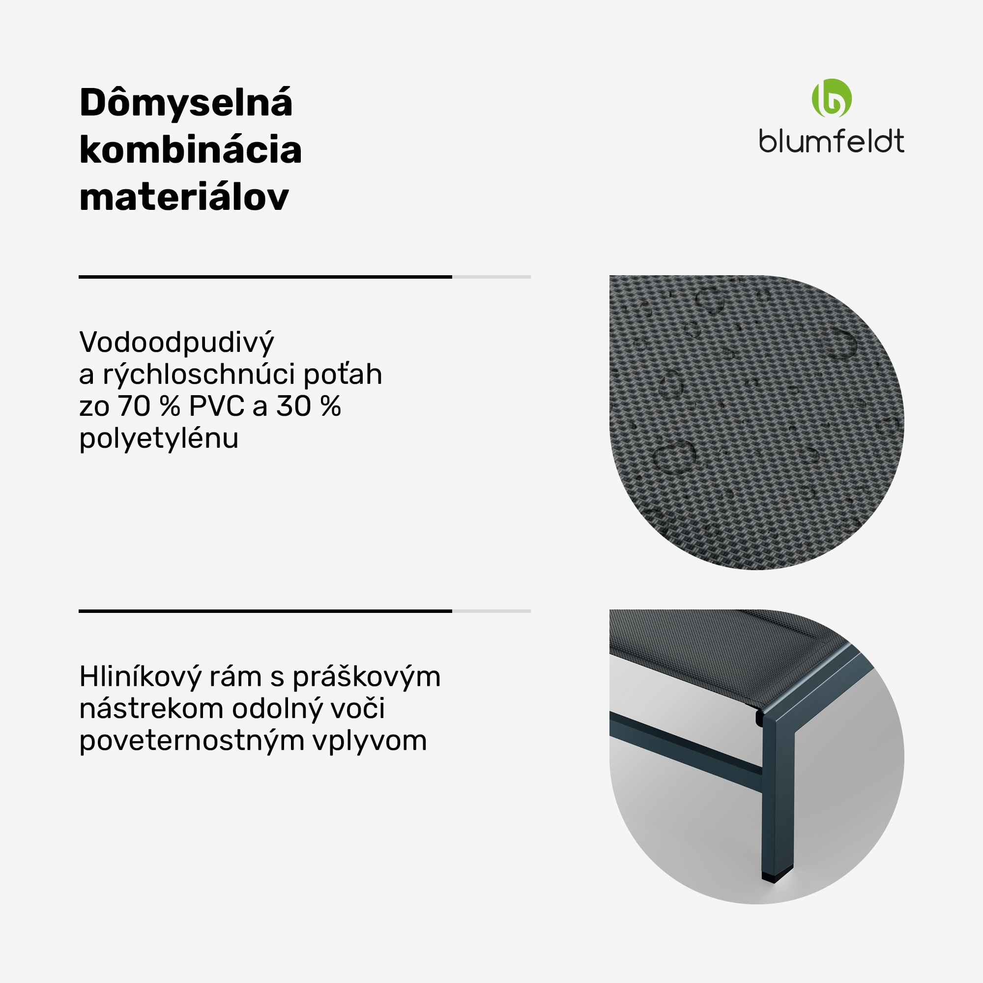 Toto všestranné lehátko vás pozýva na oddych v záhrade, na balkóne alebo terase. S flexibilne nastaviteľnými polohami operadla ponúka záhradné lehátko Blumfeldt Renazzo Lounge maximálny komfort pre pohodlné sedenie alebo ležanie. lehátko sa vyznačuje stabilným hliníkovým rámom s práškovým nástrekom, ktorý ho robí nielen odolným voči poveternostným vplyvom, ale aj ultraľahkým s celkovou hmotnosťou iba 6,8 kg.Vodoodpudivá tkanina z 70 % PVC a 30 % polyetylénu poskytuje nielen optimálny komfort, ale je aj ľahko umývateľná. K dispozícii v elegantných farebných kombináciách, lehátko Blumfeldt Renazzo Lounge sa hodí k akémukoľvek vonkajšiemu štýlu.Priedušná tkanina ComfortMesh zabezpečuje príjemné chladenie v teplých dňoch, zatiaľ čo si užívate slnko. Vďaka svojim 5 polohám operadla môžete na tomto ležadle sedieť aj ležať a dokonale sa uvoľniť. S jednoduchou montážou a kompaktnými rozmermi je lehátko Blumfeldt Renazzo Lounge ideálnou voľbou pre relaxačné chvíle vonku.