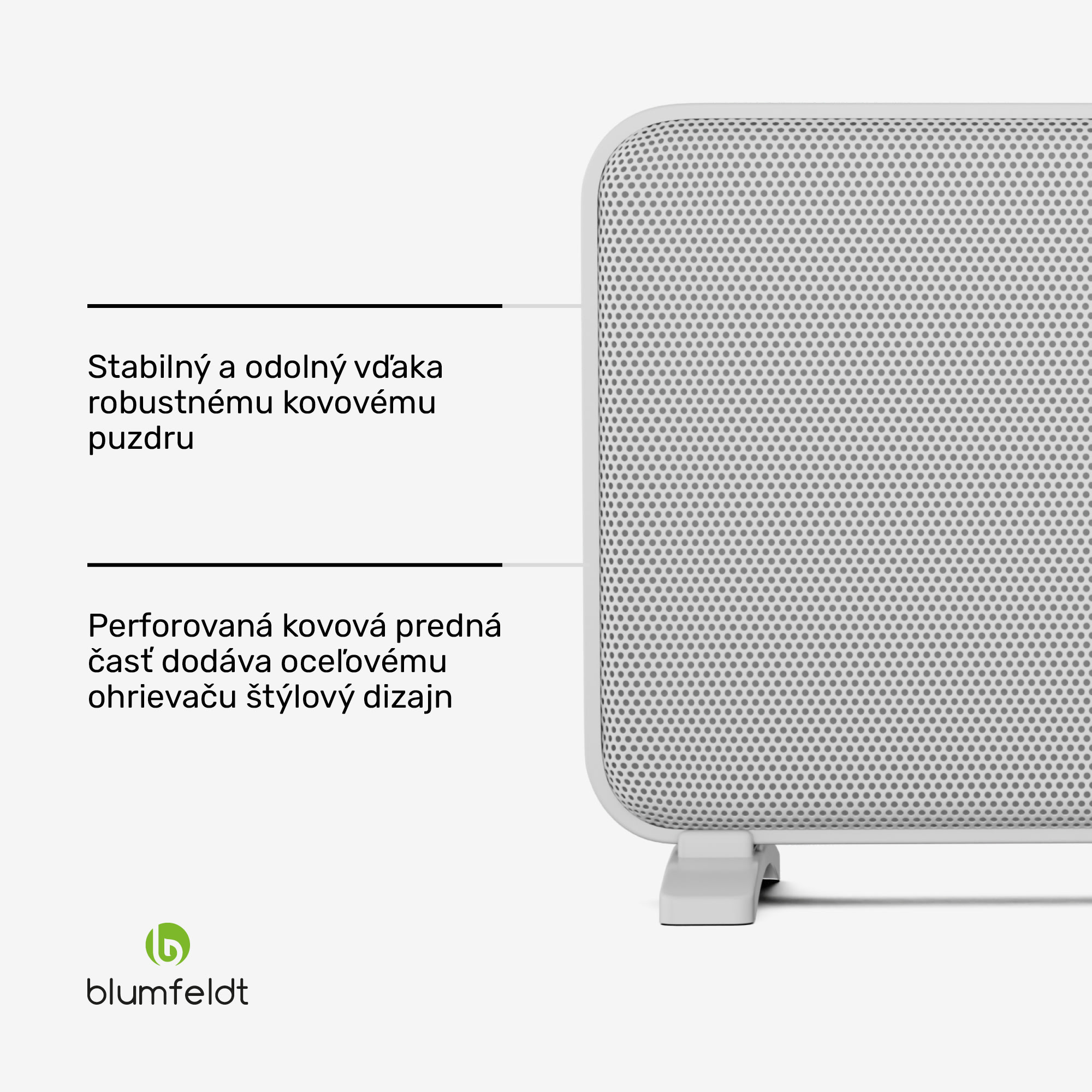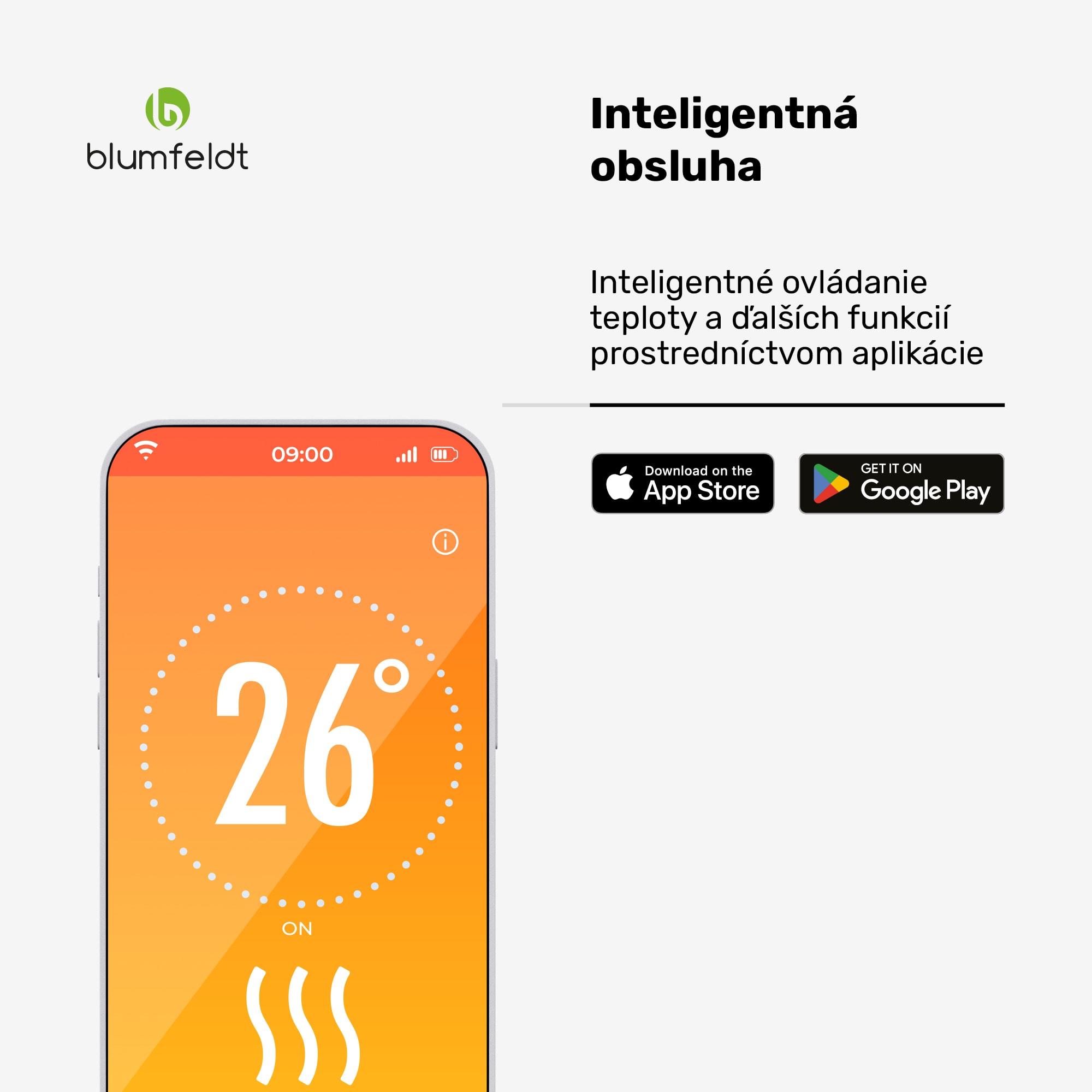Infračervený ohrievač Blumfeldt SwiftWave ponúka výkonné a inteligentné riešenie vykurovania pre váš domov. S výkonom 2000 W a inovatívnymi grafénovými vykurovacími prvkami poskytuje rovnomernú distribúciu tepla a dlhú životnosť, čo je ideálne pre miestnosti do 20 m².Vďaka pokročilej technológii grafénu ponúka infračervený ohrievač Blumfeldt SwiftWave účinnejšie a rovnomernejšie vykurovanie v porovnaní s bežnými technológiami vykurovania. Aplikácia a dotykové ovládanie: Ovládajte ohrievač pohodlne odkiaľkoľvek pomocou špeciálnej aplikácie alebo integrovaného dotykového ovládania a bez námahy nastavte teplotu.Robustný kovový kryt a jedinečný dizajn poskytujú zariadeniu nielen dlhú životnosť, ale aj štýlový vzhľad. Vďaka ďalším bezpečnostným funkciám, ako je ochrana proti prehriatiu a nakloneniu, integrovaný termostat či detská poistka, je tento sálavý ohrievač bezpečnou voľbou pre vašu domácnosť.Zažite dokonalú kombináciu účinnosti a dizajnu s infračerveným ohrievačom Blumfeldt SwiftWave a zaistite si príjemné teplo vo svojom dome. Objednajte si ešte dnes!
