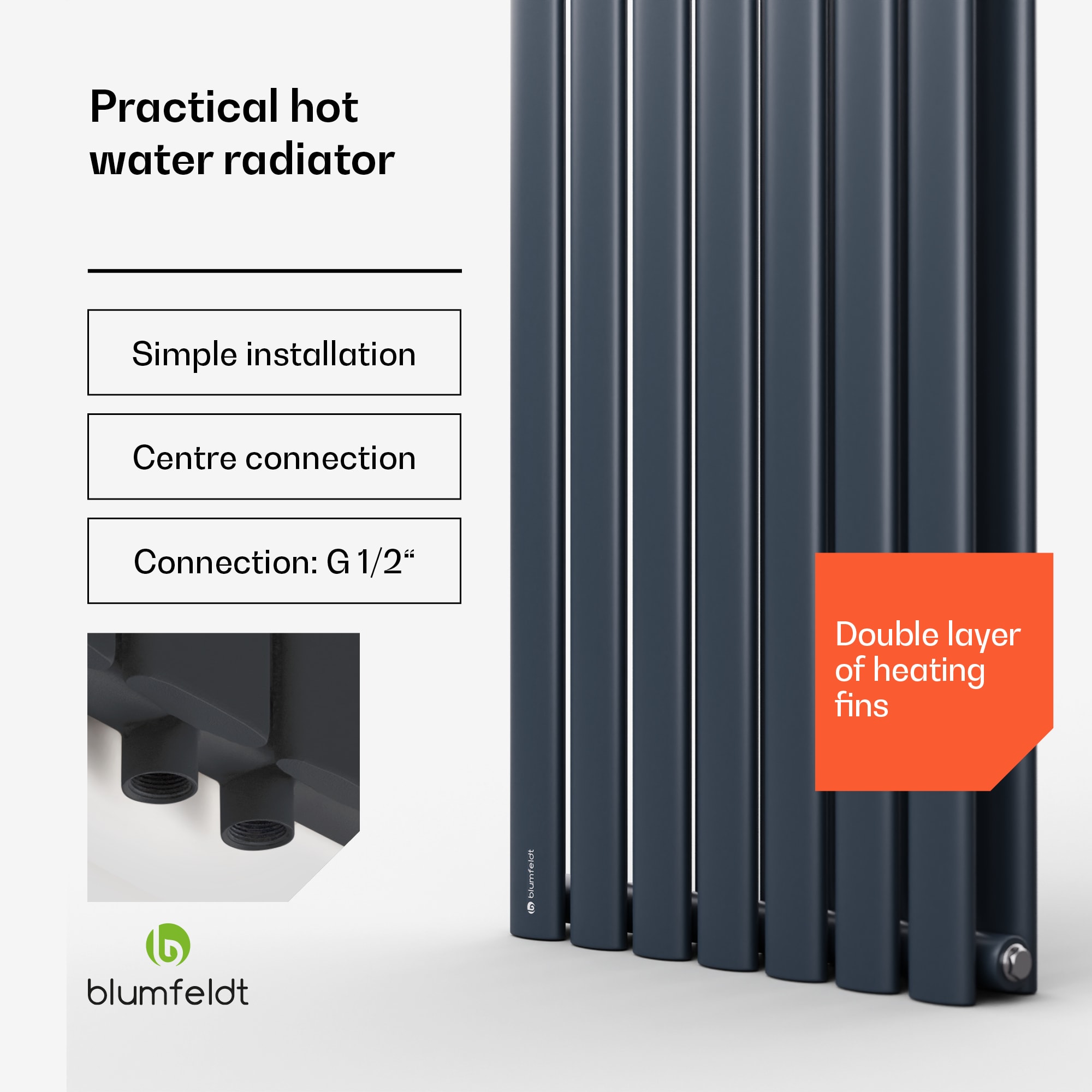 Príjemné teplo pre váš domov v modernom dizajne: radiátor Tallheo 41 x 180 cm od Blumfeldt nielenže vyhreje kúpeľňu na príjemnú teplotu, ale ešte aj atraktívne vyzerá.Rúrkový radiátor Blumfeldt Tallheo 41 x 180 možno jednoducho integrovať do existujúceho systému teplej vody alebo diaľkového vykurovania a funguje aj s elektrickými vykurovacími telesami alebo elektronickými termostatmi. Poskytuje spoľahlivý a rovnomerný zdroj tepla v kúpeľni. Pripojenie je veľmi jednoduché: konštrukcia umožňuje pripojenie v strede aj na bočných rúrkach. Vďaka tomu dokáže Tallheo optimálne reagovať na mnohé konštrukčné podmienky. Potrebné nástenné konzoly sú tiež priamo súčasťou balenia. Robustný systém kovových rúrok optimálne vedie a rozvádza teplo až do 70 °C. Vďaka svojim 2 x 7 vertikálnym vykurovacím rúram má navyše optimálne zväčšený povrch a dosahuje tak tepelný výkon až 1435 W.Vďaka špeciálnemu tenkému dizajnu so šírkou len 41 cm a hĺbkou 8 cm sa perfektne hodí do všetkých miestností s obmedzeným priestorom. Vďaka medzerám medzi 2 x 7 rúrkami sa radiátor veľmi jednoducho čistí. Príjemné teplo hneď po sprchovaní alebo kúpaní s radiátorom Tallheo 41 x 180 od Blumfeldt – štýlový zážitok.