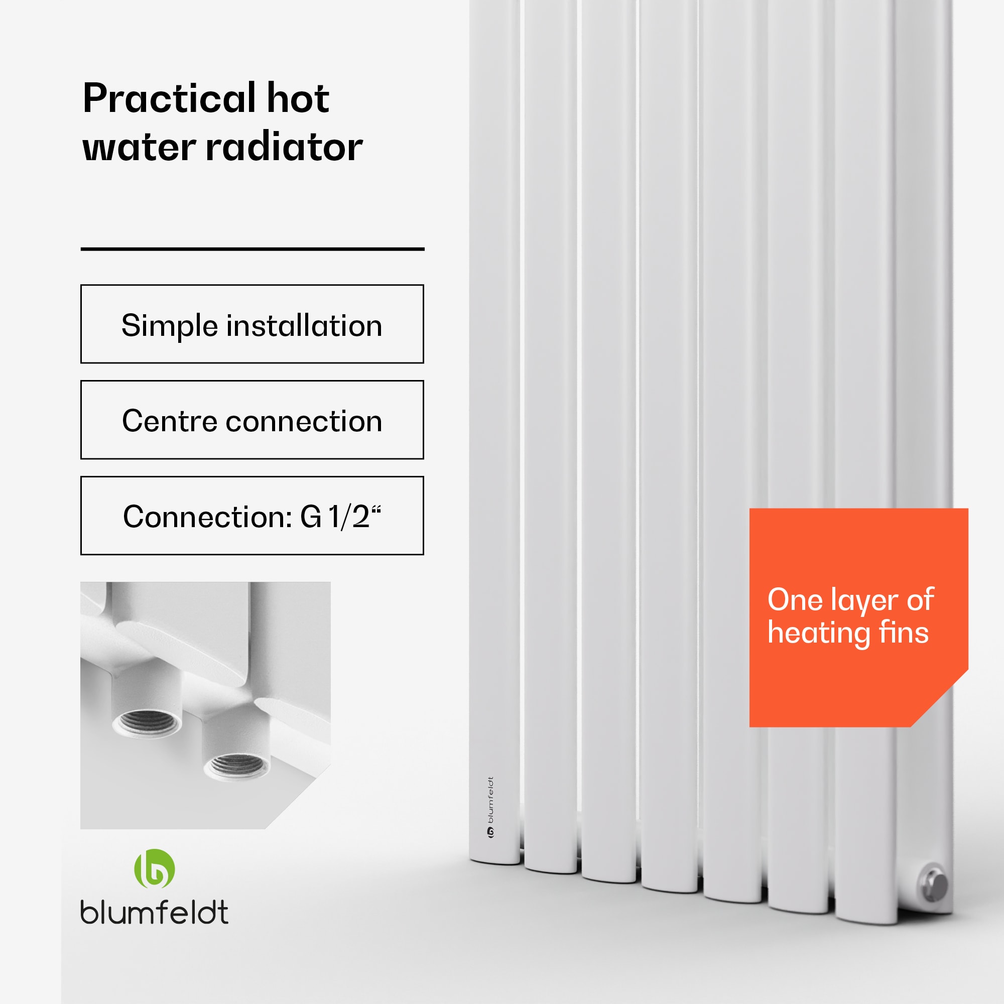 Príjemné teplo pre váš domov v modernom dizajne: radiátor Tallheo 41 x 180 cm od Blumfeldt nielenže vyhreje kúpeľňu na príjemnú teplotu, ale ešte aj atraktívne vyzerá.Rúrkový radiátor Blumfeldt Tallheo 41 x 180 možno jednoducho integrovať do existujúceho systému teplej vody alebo diaľkového vykurovania a funguje aj s elektrickými vykurovacími telesami alebo elektronickými termostatmi. Poskytuje spoľahlivý a rovnomerný zdroj tepla v kúpeľni. Pripojenie je veľmi jednoduché: konštrukcia umožňuje pripojenie v strede aj na bočných rúrkach. Vďaka tomu dokáže Tallheo optimálne reagovať na mnohé konštrukčné podmienky. Potrebné nástenné konzoly sú tiež priamo súčasťou balenia. Robustný systém kovových rúrok optimálne vedie a rozvádza teplo až do 70 °C. Vďaka svojim 7 vertikálnym vykurovacím rúram má navyše optimálne zväčšený povrch a dosahuje tak tepelný výkon až 691 W.Vďaka špeciálnemu tenkému dizajnu so šírkou len 41 cm a hĺbkou 5,5 cm sa perfektne hodí do všetkých miestností s obmedzeným priestorom. Vďaka medzerám medzi 7 rúrkami sa radiátor veľmi jednoducho čistí. Príjemné teplo hneď po sprchovaní alebo kúpaní s radiátorom Tallheo 41 x 180 od Blumfeldt – štýlový zážitok.