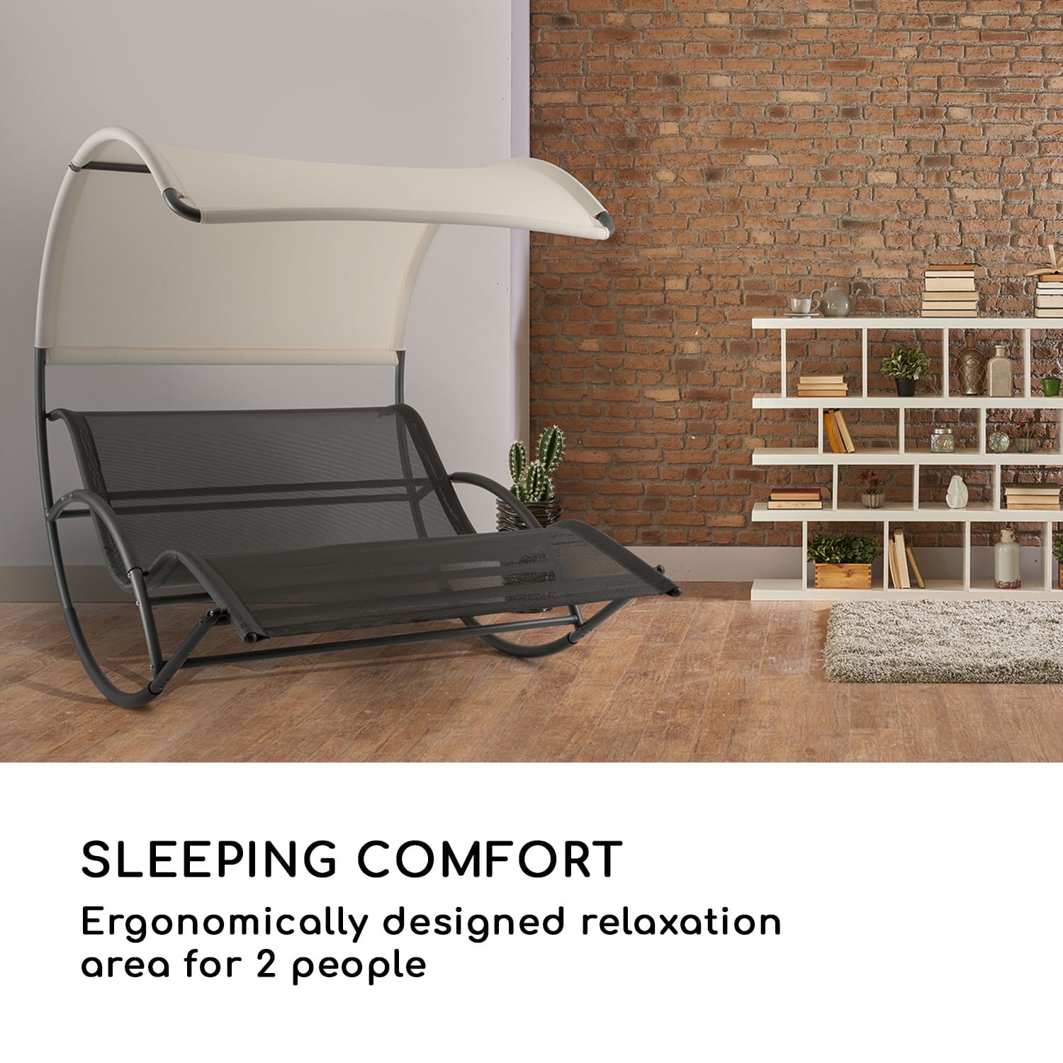 Čistá relaxácia! Premeňte svoj domov s hojdacím ležadlom Blumfeldt The Big Easy na ostrov oddychu. Oáza spokojnosti má pevný, nehrdzavejúci hliníkový rám, ktorý je chránený pred vonkajšími vplyvmi práškovým lakovaním. Základná kostra je potiahnutá nepremokavou strechou a miestom na ležanie (D x Š: 200 cm x 130 cm) pre 2 osoby a má nosnosť až 350 kg. Hojdacie miesto oddychu perfektne zapadne vďaka svojmu zvlnenému dizajnu do akéhokoľvek prostredia záhrady a ponúka v horúcich letných dňoch spoľahlivú ochranu proti UV žiareniu a tiež ochranu pred slnkom vďaka svojej zakrivenej streche proti tieňu, ktorú možno v prípade potreby odobrať. Stojanové zariadenie chránené penou je vhodné pre všetky podlahové krytiny, čo umožňuje vnútorné aj vonkajšie použitie zariadenia. Okrem toho podporuje ergonomicky tvarované ležadlo prirodzený tvar chrbtice a ponúka 2 osobám relaxačný priestor z príjemného materiálu ComfortMesh, ktoré sa mimoriadne ľahko udržiava a čistí vďaka svojej štruktúre. Hojdacie ležadlo Blumfeldt The Big Easy je ideálnou komfortnou zónou pre tých, ktorí chcú obohatiť svoj každodenný život o nádherné prázdninové okamihy. Dostupné verzie: čierna, strieborná (produkt: 10032241)