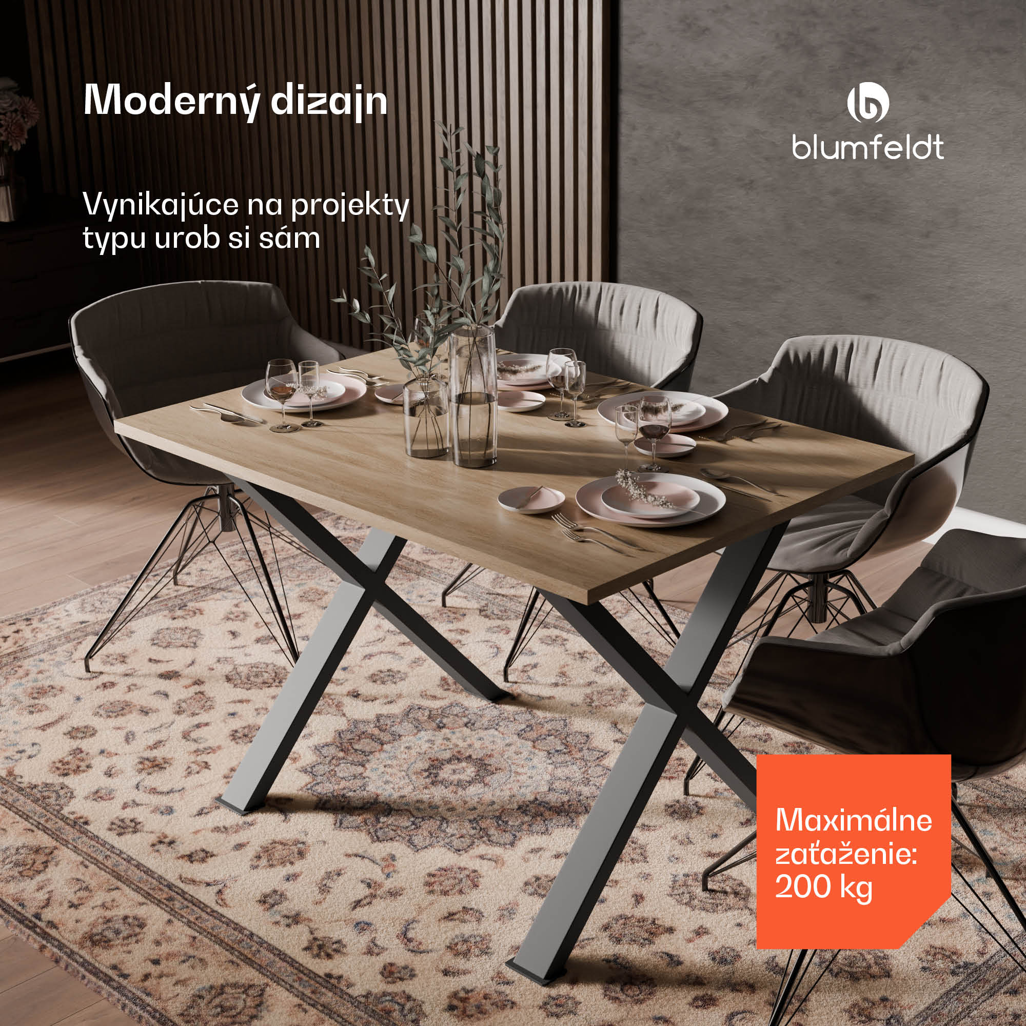 Nohy stola blumfeldt UrbanFodge X spájajú moderný dizajn s funkčnosťou a zaujmú svojou všestrannosťou. Konferenčný stolík do kancelárie alebo moderný jedálenský stôl pre celú rodinu možno jednoducho zrealizovať ako svojpomocný projekt.Nohy stola od spoločnosti blumfeldt zaujmú vysokokvalitným spracovaním a matným povrchom, ktorý im dodáva sofistikovaný vzhľad. Robustné oceľové nohy stola v tvare písmena X zaisťujú vynikajúcu stabilitu a maximálna nosnosť 200 kg umožňuje všestranné použitie. Či už ako konferenčný stolík do kancelárie alebo ako veľký jedálenský stôl pre celú rodinu – s pevnými nohami stola je možné realizovať akýkoľvek svojpomocný projekt. Nohy stola s hmotnosťou 16,5 kg zaisťujú, že robustné, kvalitné kusy nábytku možno zostaviť v štýle „Urob si sám“.Montáž je jednoduchá vďaka presným otvorom a robustným montážnym doskám, takže nohy stola od spoločnosti blumfeldt možno bez námahy premeniť na hotový kus nábytku.Objavte všestrannú funkčnosť stolových nôh blumfeldt UrbanFodge X a pustite sa do svojho ďalšieho nábytkárskeho projektu!