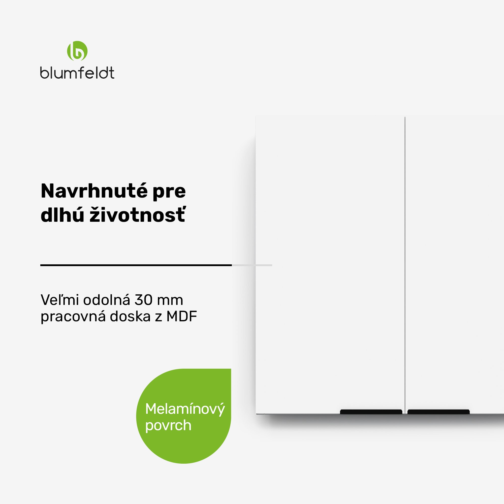 Vysoká skrinka Blumfeldt WoodVista vytvára ďalší úložný priestor tým, že je elegantne umiestnená nad stojacimi kuchynskými skrinkami. Tento dômyselný dizajn vám umožní efektívne a štýlovo využiť priestor v kuchyni.Skrinka je vyrobená z robustnej 16 mm drevotrieskovej dosky s odolnou melamínovou povrchovou úpravou a zaručuje dlhú životnosť. Moderný dizajn dopĺňajú matné hliníkové úchyty, ktoré dokonale zapadnú do každého kuchynského interiéru. Soft-Close závesy zabezpečujú tiché a jemné zatváranie dverí a spájajú v sebe odolnosť a pohodlie. Skrinka je určená na montáž na stenu, šetrí miesto na podlahe a možno ju ľahko integrovať do stojacich kuchynských skriniek. Je vyrobená z dreva pochádzajúceho z trvalo udržateľných zdrojov, takže je šetrná k životnému prostrediu. Praktické police udržia vašu kuchyňu upratanú a ich montáž je veľmi jednoduchá vďaka priloženým materiálom a návodom.Maximalizujte potenciál svojej kuchyne pomocou vysokej skrinky Blumfeldt WoodVista – štýlového a funkčného úložného riešenia!