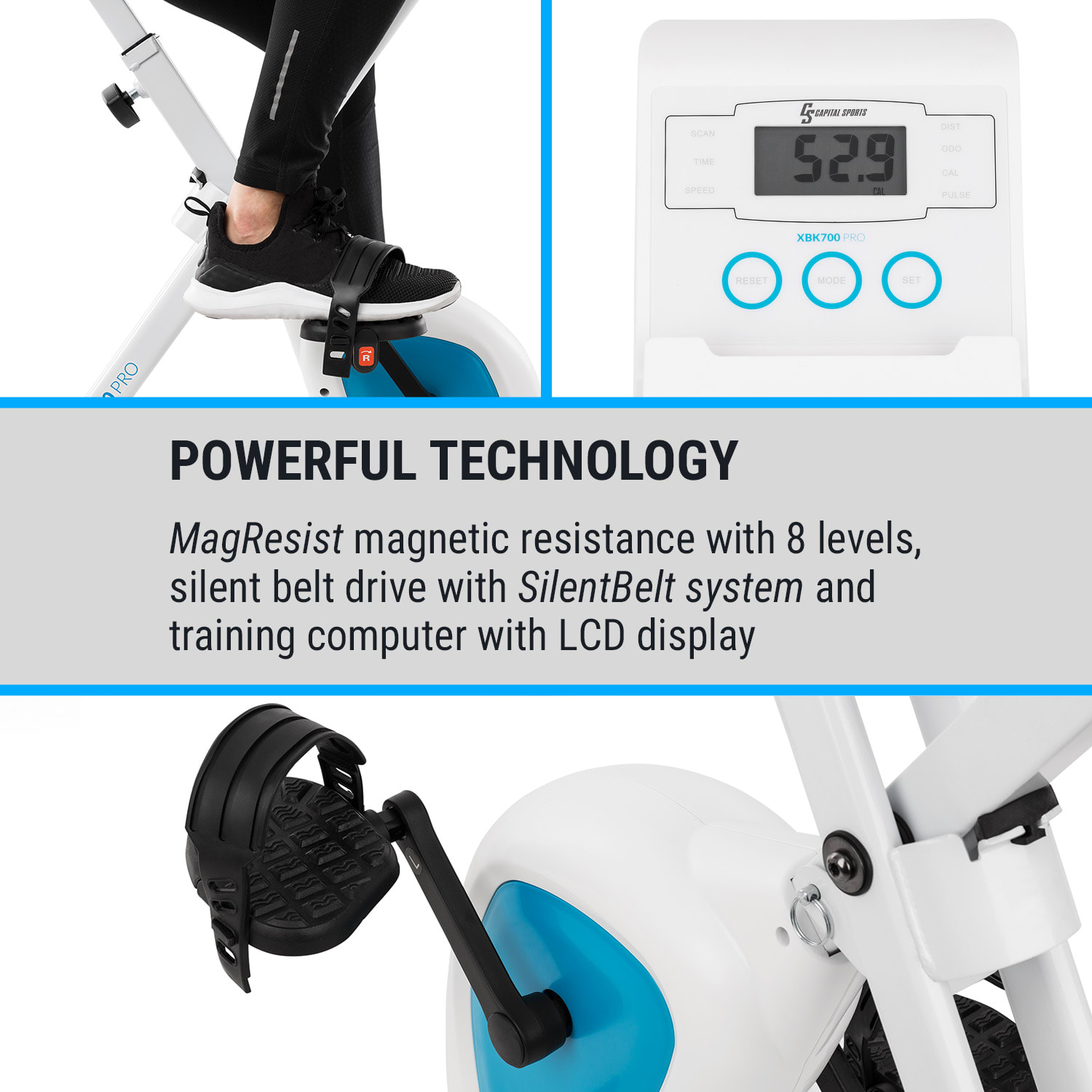Capital Sports Azura Air, rotoped, domáci trenažér, X-bike, SilentBelt, magnetický odpor, sklápací – Kúpiť