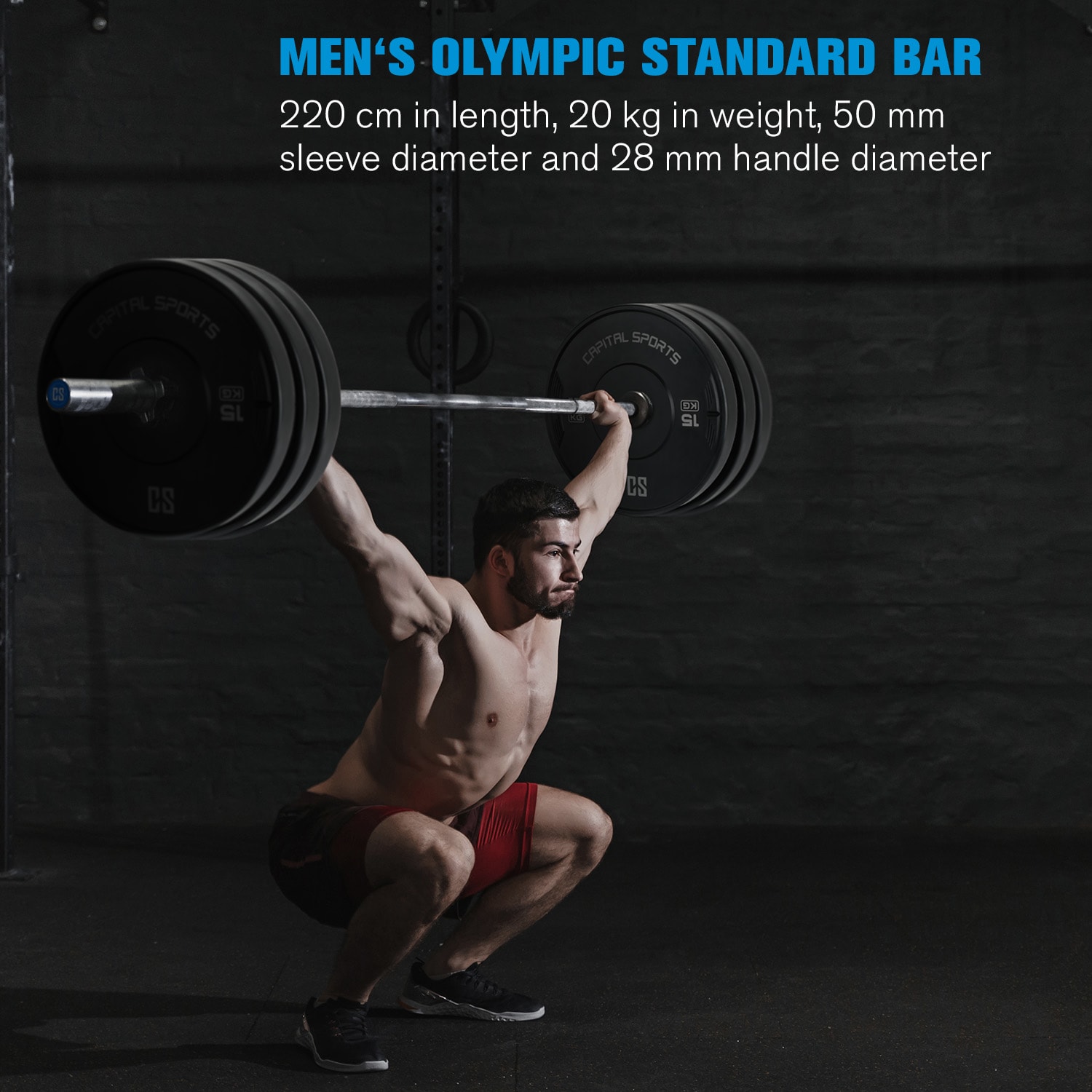 Obojručná tyč CAPITAL SPORTS IWF Men je ďalším vývojom našich osvedčených obojručných činkových osí. Vďaka svojmu špeciálnemu zhotoveniu je ideálna na rôzne cviky olympijského vzpierania. Stredne ostré ryhovanie, dynamické otáčanie a znížený krútiaci moment osi – tu nájdete tú pravú činku pre vysoké zaťaženie pri vzpieraní. Dĺžka 220 cm, vlastná hmotnosť 20 kg a priemer nakladacej časti 50 mm spĺňajú normy olympijskej tyče. Túto vysokú úroveň požiadaviek spĺňa na všetkých úrovniach. Tyč je vyrobená z pružnej, ale veľmi odolnej pružinovej ocele, čo umožňuje jej dynamické otáčanie a zaťaženie závažiami až do 910 kg. Vstavané trojité ihlové ložiská poskytujú olympijskej vzpieračskej tyči CAPITAL SPORTS IWF Men znížený krútiaci moment a zvyšujú rotáciu rukávov – ideálne pre dynamické priebehy pohybov olympijského vzpierania. Rukoväť má označenia pre Weightlifting IWF (910 mm) a znázorňuje jednoduchým spôsobom maximálny povolený rozsah úchopu tejto disciplíny. Stredne ostré ryhovanie povrchu rukoväte kombinuje pevný a nekĺzavý úchop činky a napriek tomu stále umožňuje mnohé opakovania počas tréningu. Stred rukoväte je naopak bez ryhovania a chráni tak pokožku a odevy pri trhoch, nadhodoch aj drepoch. Na rukáv s dĺžkou 41 cm je možné použiť všetky kovové závažia a tiež kotúče z tvrdej gumy so štandardným 51 mm otvorom. Vďaka tvrdej chrómovanej oceli sa tyč maximálne jednoducho udržiava a je extrémne odolná voči korózii. Či už v stojane, alebo v domácej posilňovni, činková os CAPITAL SPORTS IWF Men je tou pravou voľbou pre všetkých ambicióznych atlétov.