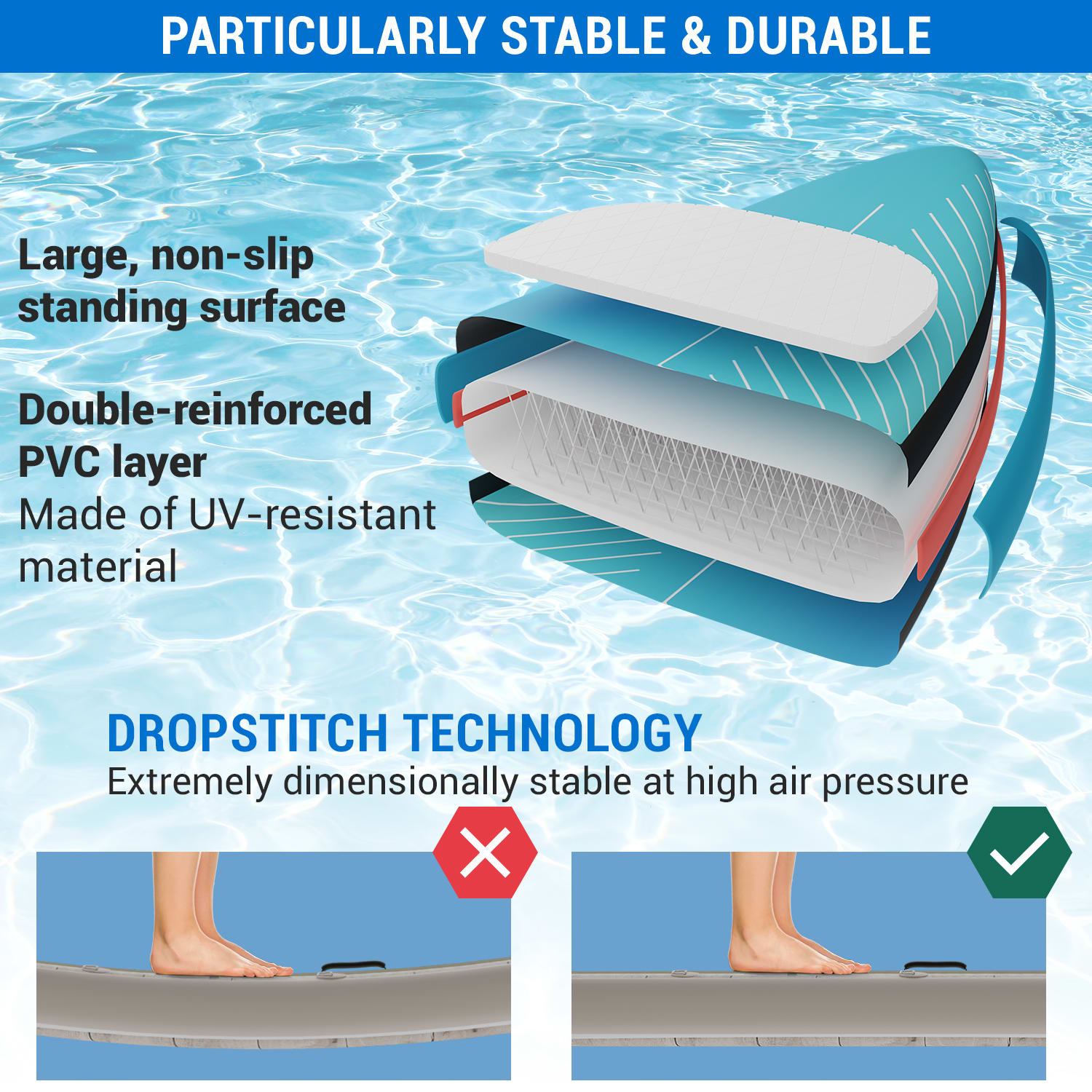 Slnko svieti, voda volá a SUP doska Capital Sports Lanikai Cruiser 10.8 čaká so svojimi rozmermi 330 × 77 × 15 cm na to, aby dobyla rieky a jazerá. Nafúkať a pádlovať – najpohodlnejší spôsob objavovania krajiny.Všetko po ruke. SUP doska, teleskopické pádlo, bezpečnostné pútko na chodidlá, súprava na opravu a dvojzdvihová vzduchová pumpa – vo veľkom transportnom ruksaku sa nájde miesto na všetko. Všetky súčasti súpravy pritom spĺňajú tri kritériá: malý objem, nízka hmotnosť a vysoká stabilita.S vysokotlakovou pumpou máš PVC vysokotlakové komory SUP dosky nafúkané v priebehu pár minút. Ich zhotovenie pomocou technológie DropStitch garantuje extrémne vysokú stabilitu dosky. Rovnako rýchlo sa Lanikai Cruiser 10.8 opäť odloží do zlepšeného transportného ruksaku s objemom 55 litrov. Zmestí sa do každého kufra a vďaka pohodliu pri nosení a nízkej celkovej hmotnosti súpravy zhruba 12,8 kg ho ľahko prenesieš aj na dlhších trasách.Stand up paddle board Lanikai Cruiser 10.8 je vhodný pre začiatočníkov aj pokročilých. Jeho tvar cruiser nezaručuje len väčšiu efektívnosť a obratnosť, ale aj vyššiu rýchlosť. Preto je veľmi vhodný predovšetkým na dlhšie výlety a cesty. Aj začiatočníci budú mať radosť zo stand up paddle boardu Capital Sports Lanikai Cruiser 10.8, pretože napriek temperamentnejšiemu tvaru je stále mimoriadne stabilný, robustný a odolný proti prevráteniu. Povrchový materiál EVA-pad sa postará o príjemný pocit pri státí bez pošmyknutia. A keď sa predsa len viac-menej nedobrovoľne ponoríš do studenej vody, bezpečnostné pútko zabezpečí, že doska zostane vždy v tvojej blízkosti.Deň strávený na vode vyvolá smäd a hlad – najmä na dlhších cestách. Preto je možné pohodlne upevniť do elastických bungee povrazov niečo pod zub na cesty. A prečo si nenaplánovať výlet s priateľmi a rodinou? Je úplne jedno, o akú vekovú či fitnes kategóriu ide – tento trendový šport sa orientuje na každého a je súčasne voľnočasovou zábavou aj tréningom celého tela, ktorý je šetrný voči kĺbom. Teleskopické pádlo sa dá prispôsobiť každej telesnej výške. Optimálnou výškou pádla sa dosiahne uvoľnenie a odľahčenie chrbtového svalstva.Najrelaxačnejší druh pohybu: so súpravou so stand up paddleboardom Lanikai Cruiser 10.8 od spoločnosti Capital Sports pádluješ v ústrety odpočinku a spoznáš mestá, rieky a jazerá z nového uhla.