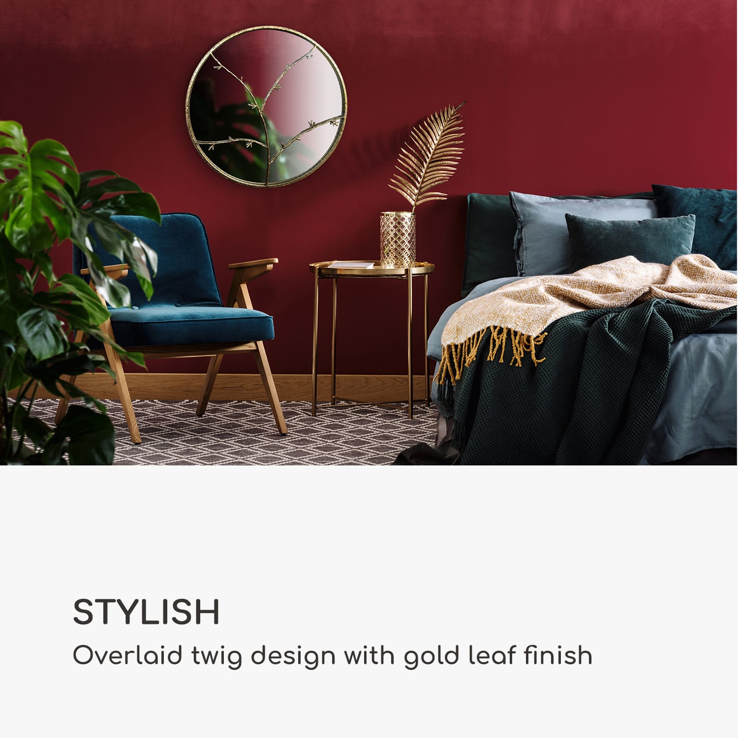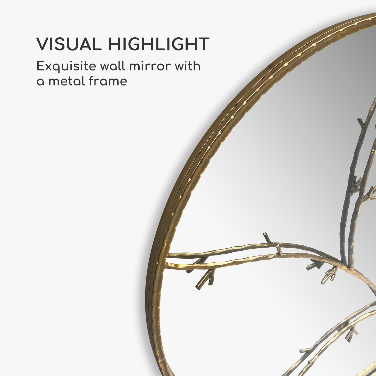 Precízne spracovanie, jemné materiály a extravagantný vzhľad: to je nástenné zrkadlo Berkeley od Casa Chic by blumfeldt.Z kovového rámu vyrastajú na povrchu zrkadla vetvy, ktoré vytvárajú jedinečný vzor. Dizajn vetvičiek s ručne maľovaným zlatým povrchom vytvára výrazný vzhľad, ktorý okamžite upúta pozornosť. Či už zavesené v obývacej izbe, spálni alebo vstupnej hale, zrkadlo Berkeley sa všade postará o atraktívny vzhľad. Okrúhle zrkadlo s akcentom je odolné voči vlhkosti a zakaleniu, takže je vhodné aj na použitie v kúpeľni. < Inšpirované prírodou a vytvarované z kovu - nástenné zrkadlo Berkeley od Casa Chic by blumfeldt - nádherný doplnok do každého interiéru.