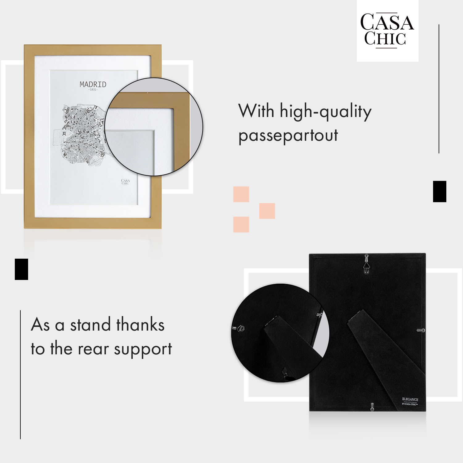 Rámčeky na obrazyBerwick od Casa Chic by blumfeldt vnesú do vášho domova novú eleganciu. Šikovne prezentujte svoje obľúbené fotografie – s paspartou alebo bez nej: ako stojan na výšku alebo na šírku alebo ako klasický nástenný rám. Za sklenenou tabuľou sa každý obrázok stane lákadlom pre oči. Kvalitný držiak na zadnej strane umožňuje mimoriadne jednoduché vkladanie alebo výmenu obrázkov. Každý deň vám vyčarí úsmev na tvári: V štýlových fotorámikoch Berwick nájdu vaše spomienky krásny domov.