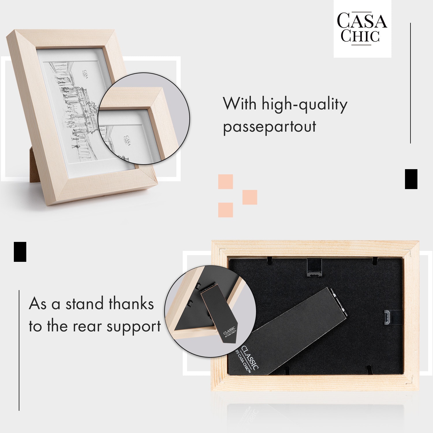 Casa Chic Edinburgh, rám na obrázky, obdĺžnikový, fotky 10 x 15 cm, pasparta, pravé drevo – Kúpiť