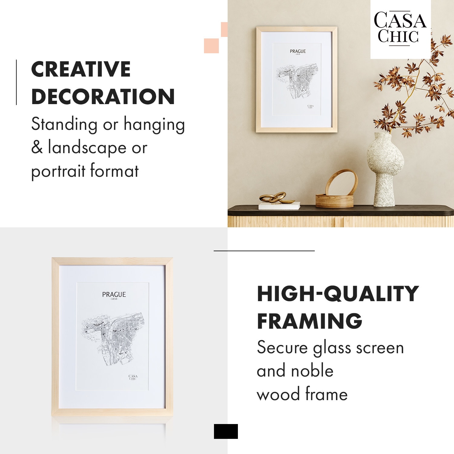 S jednoduchým fotorámom z pravého dreva Edinburgh od Casa Chic by blumfeldt zvýrazníte vaše fotky a obrázky vo formáte na výšku, ako aj na šírku. Vytvorte si krásne nástenné koláže alebo naaranžujte svoje obľúbené fotografie na príborník alebo poličku. S rámom Edinburgh ste flexibilní. Priložená pasparta ponecháva výber vhodnej obrazovej časti na vás. Jeho široký profil mu dodáva luxusný kontrast a predná strana zo skla chráni pred prachom a nečistotami.Jednoducho si zo svojich fotografií, obrázkov alebo umeleckých výtlačkov urobte viac: Fotorámik Edinburgh od Casa Chic by blumfeldt vám to umožní.