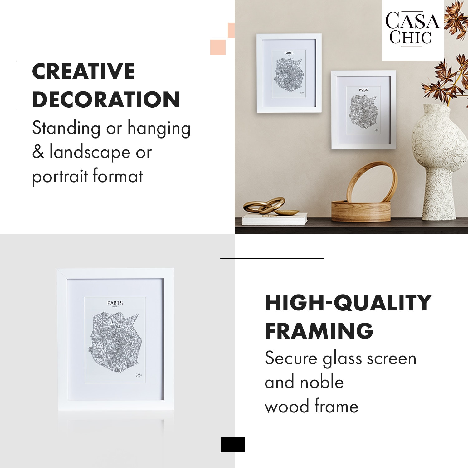 Casa Chic Everton, rám na obrázky, obdĺžnikový, fotky 24,8 x 19,3 cm, pasparta, sklo – Kúpiť