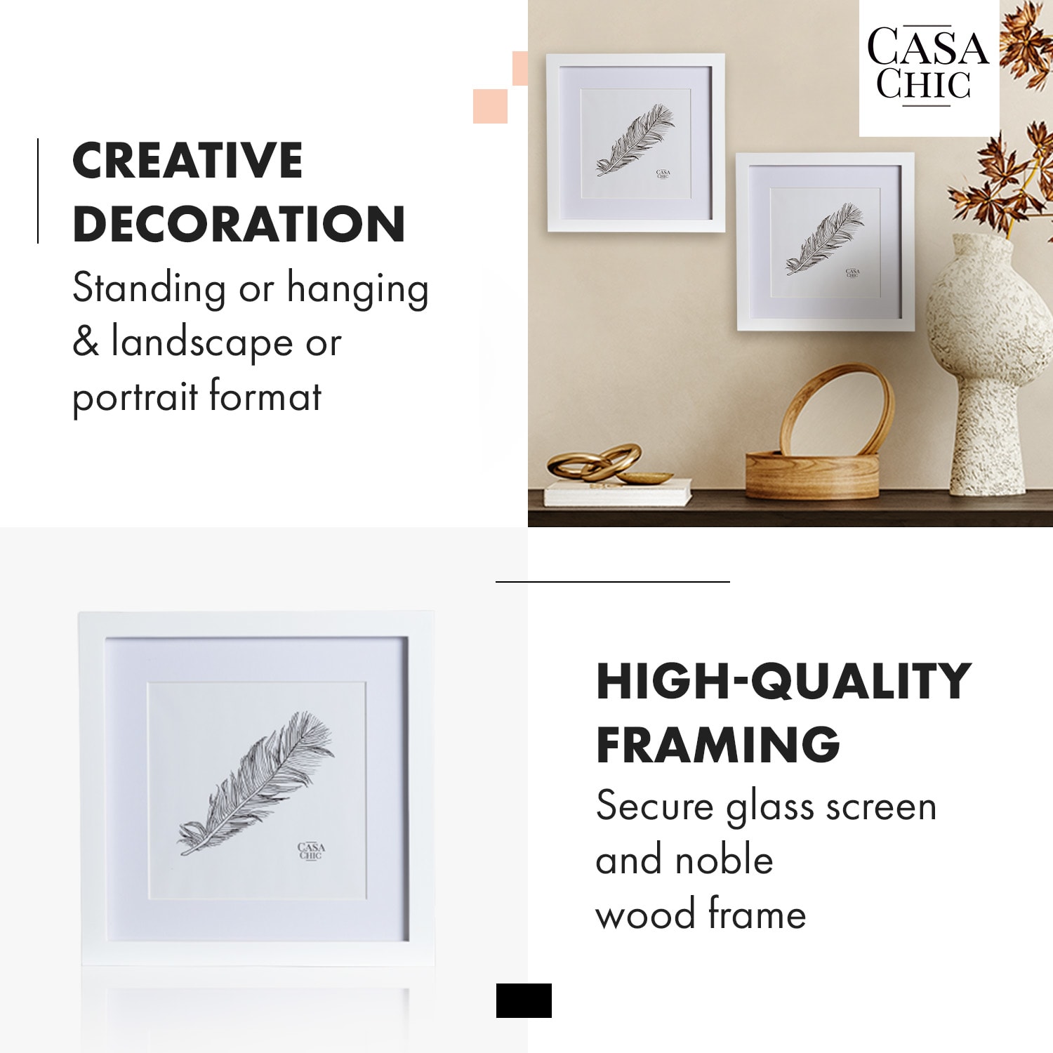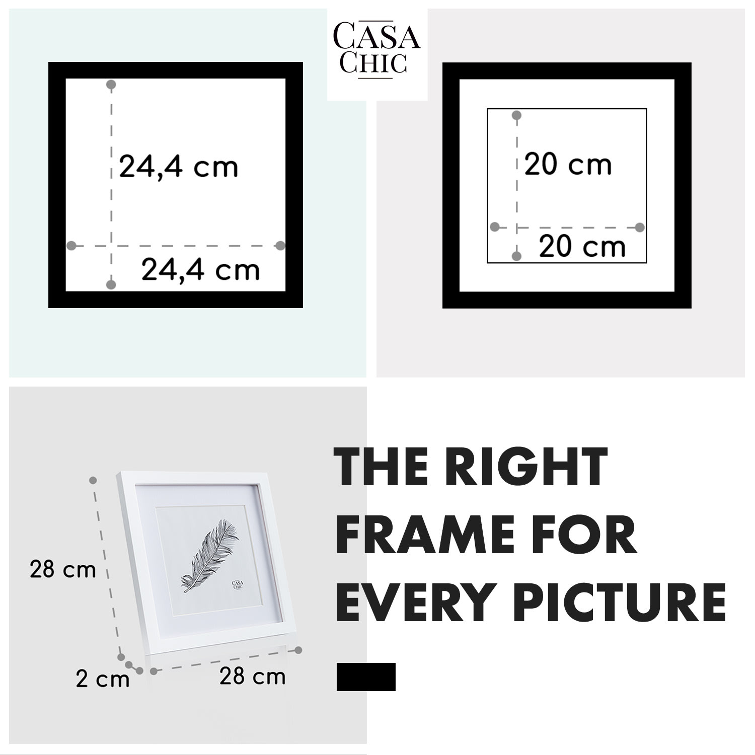 Casa Chic Everton, rám na obrázky, štvorcový, fotky 24,4 x 24,4 cm, pasparta, sklo – Kúpiť
