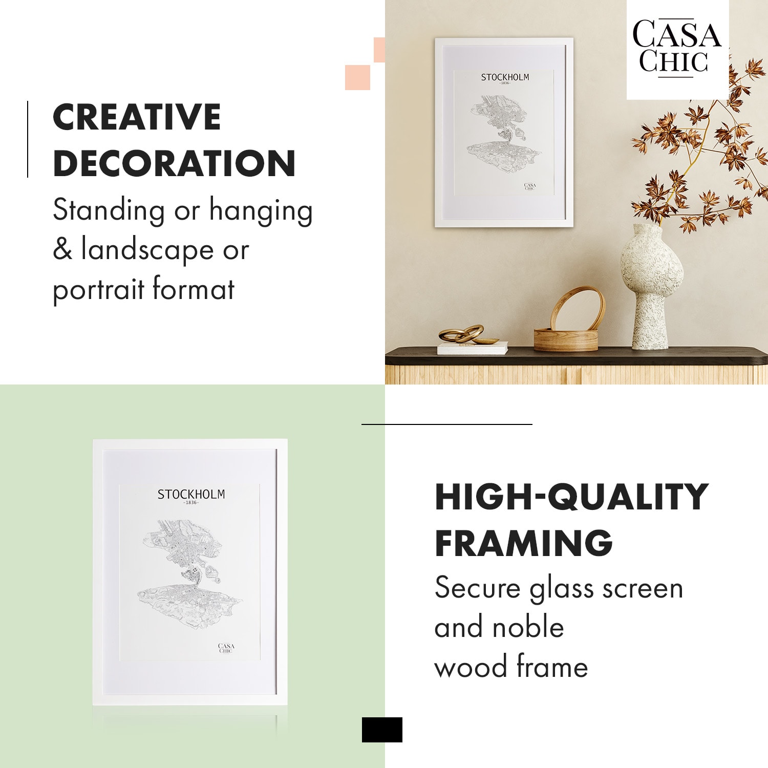 Vystavte pútavo vaše obľúbené fotky a obrazy s rámami na obrazy od Casa Chic by blumfeldt. Vysokokvalitné rámy z pravého dreva svojou jednoduchou eleganciou skrášlia steny vašej izby. Vďaka priloženej pasparte si zvolíte vhodný výrez pre obraz na šírku alebo na výšku. Za plexisklom, odolným voči rozbitiu, budú vaše umelecké diela dokonale chránené pred prachom a nečistotami. S fotorámikmi Kenton bude každá fotografia pastvou pre oči.