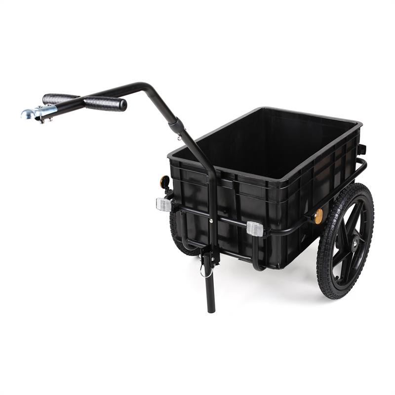 Koniec vlečenia. S prívesom za bicykel Duramaxx Big-Blue-Mike sú rýchlo a bezpečne uložené všetky potreby pre ďalší výlet na bicykli. Či pikniková deka a chladiaca taška na výlet v slnečný deň, alebo náhradné oblečenie a toaletná taška pre dlhšiu jazdu na bicykli – to všetko sa zmestí do priestranného70 l prepravného boxu a je suverénne chránené modrou, voči počasiu odolnou krycou plachtou pred vlhkosťou. S nosnosťou až do 40 kg udrží aj väčšie záťaže a zároveň zaisťuje optimálnu stabilitu a bezpečnosť pri jazde a predovšetkým pri brzdení.Aj pri nakupovaní je nákladný vozík Big-Blue-Mike veľkou podporou. Na jeho pevnú kovovú konštrukciu možno naložiť až dve nápojové debny a odvezie ich až domov bez únavy. Alternatívne ho možno jednoducho odobrať z bicykla a použiť ako vozík – vysoké oje s guľovou spojkou sa postará o super rýchlu montáž. Rukoväte majú príjemnú výšku pre ručné ťahanie a vďaka priprevniteľnému stojanu je možné odstaviť príves Duramaxx bezpečne na dlaždiciach, štrku alebo na lúke.Príves Big-Blue-Mike jazdí na dvoch 16-palcových pneumatikách so vzduchovou náplňou, ktoré sa dajú v priebehu niekoľkých sekúnd pripojiť a odpojiť pomocou zaklapnutia tlakovej páky. Cez praktické automobilové ventily možno pneumatiky jednoducho naplniť na čerpacích staniciach alebo v obchodoch s bicyklami – pumpovanie so štandardnými vzduchovými pumpami je tiež možné. Hrubý profil pneumatík poskytuje bočnú oporu a smerovú stabilitu na každom povrchu.Dostupné farby: modrá, čierna.