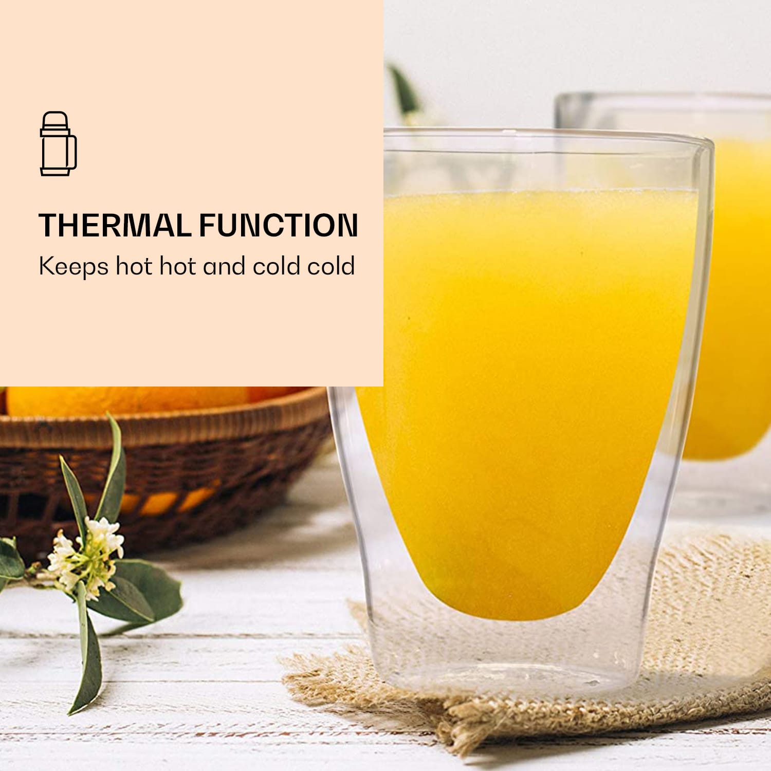 Luxusný pohár DUOS od Feelino by Klarstein je vyrobený ručne a svojím elegantným dizajnom obohatí vaše obytné prostredie. Dvojitá sklenená vrstva udrží studené nápoje dlhšie studené a teplé nápoje dlhšie teplé. Tento atraktívny pohár na espresso, čaj, panáky, aperitívy alebo dezerty je vyrobená z borosilikátového skla a je mimoriadne odolný a žiaruvzdorný: Je odolný proti poškriabaniu, veľmi ľahký a samozrejme vhodný do umývačky riadu. Systém dvojitých stien poskytuje aj úžasný optický efekt, vďaka ktorému sa zdá, že sa kvapaliny vznášajú. Štýlové, robustné a ručne vyrobené – dvojstenné termo poháre DUOS od spoločnosti Feelino by Klarstein.