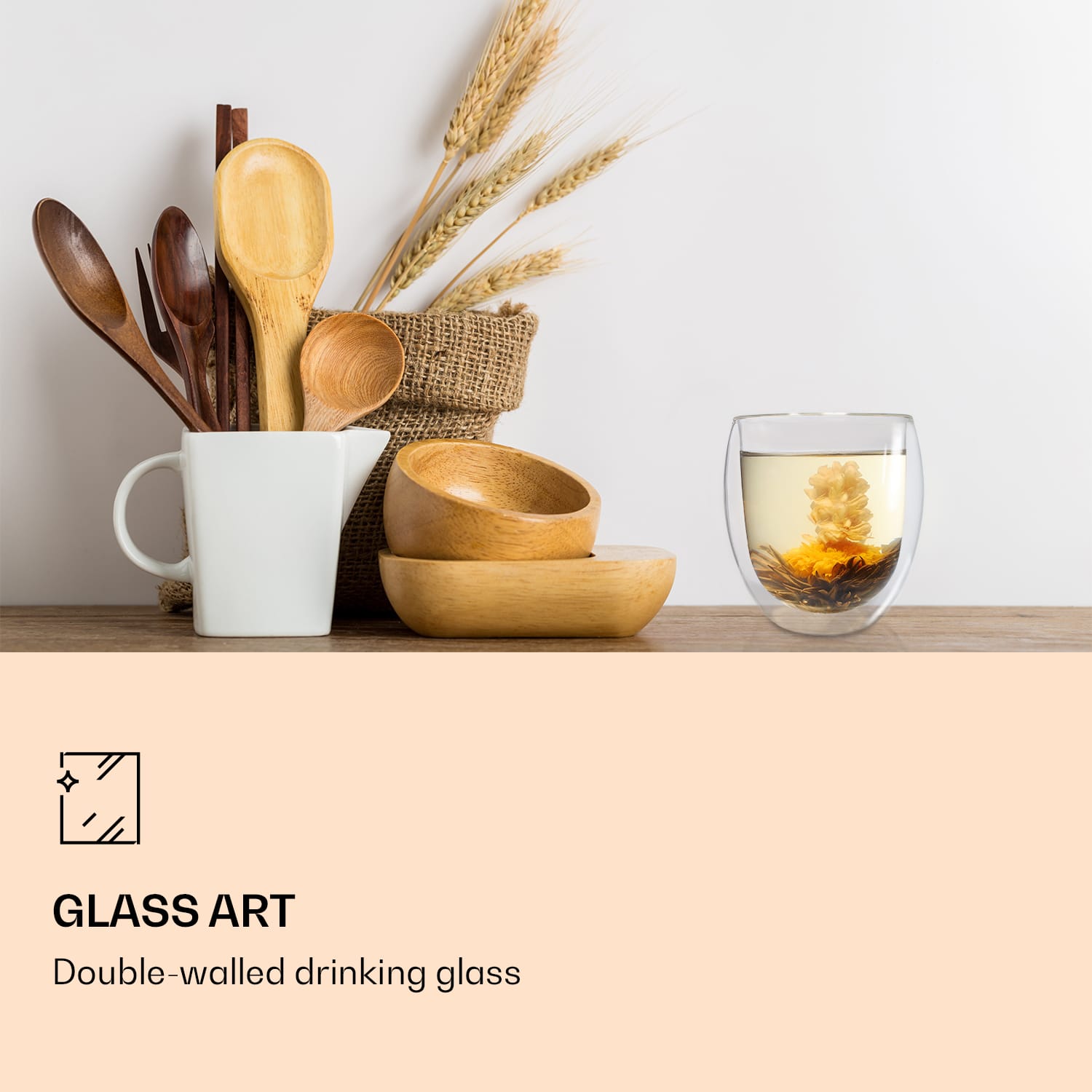 Oblé sklárske umenie: Vychutnanie si čaju z exkluzívneho pohára Ice od Feelino by Klarstein je prekrásnym prírodným divadlom, keď sa v baňatom pohári rozvinie prirodzená farba čaju. Pohľad je dychberúci, pretože váš nápoj akoby sa v baňatom pohári zázračne vznášal. Tento dekoratívny vzhľad je dosiahnutý vďaka výrobe z dvojstenného borosilikátového skla.Popritom zažijete s čajovým pohárom Ice od Feelino by Klarstein aj ideálny komfort pri pití čaju. Dvojitá vrstva skla mení uzavretý vzduch na izolačnú vrstvu, takže horúce ostane dlhšie horúcim a studené studeným. Pohár na čaj Ice je ručne fúkaný, s jedinečnou, veľmi odolnou kvalitou, vďaka ktorej je každý pohár unikátny. Vzhľad s vysokým leskom a harmonický zaoblený dizajn pôsobia exkluzívne – pohár je veľmi ľahký, odolný proti poškriabaniu a vhodné do umývačky riaduČarovné chvíle s plávajúcim čajom: V fúkanom pohári na čaj Ice od Feelino by Klarstein sa luhovanie čaju stáva farebným pôžitkom a navodzuje dojem, že sa v pohári vznáša.