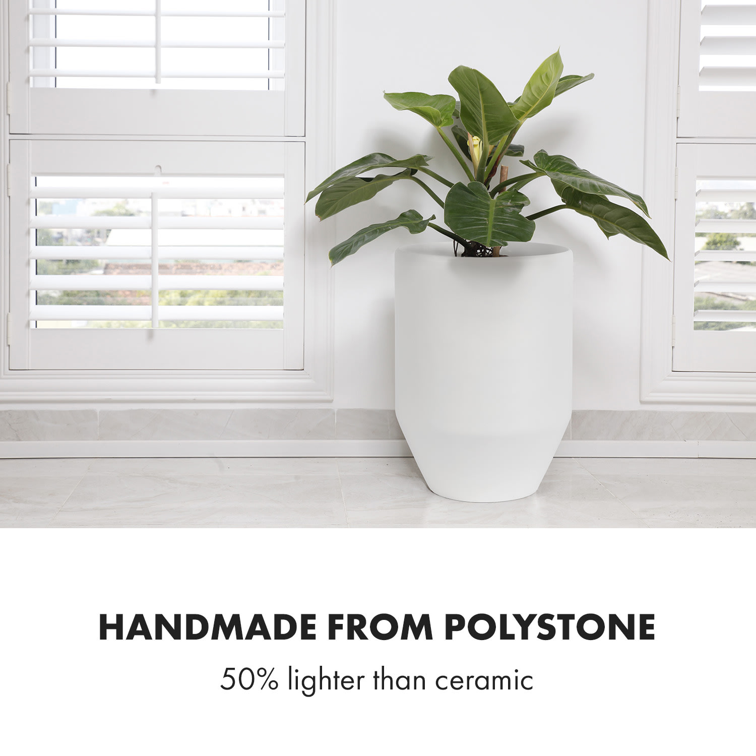 V ušľachtilom kvetináči Almere od Fox & Fern by blumfeldt vyrobeného z polystonu sa vaše rastliny – od azaliek až po izbové palmy – budú cítiť pohodlne a bude sa im dariť. Polyston je kombináciou kameňa, cementu a sklolaminátu, je obzvlášť robustný a tvrdý, no je mnohokrát ľahší ako prírodný kameň. Je tiež veľmi šetrný k rastlinám, takže môžete zasadiť svoje listnaté alebo ostnaté spolubývajúce priamo do kvetináča Almere. Vďaka otvoru na odtok vody v spodnej časti, ktorý môžete podľa potreby otvárať a zatvárať pomocou príslušnej zátky, je vždy zabezpečená ideálna úroveň vlhkosti. Či už v interiéri alebo exteriéri, okrúhly dizajn ručne vyrobeného kvetináča krásne zvýrazní vaše rastliny a kvety a dodá vášmu domovu moderný nádych.
