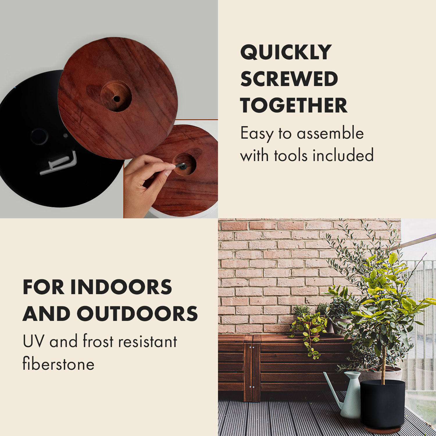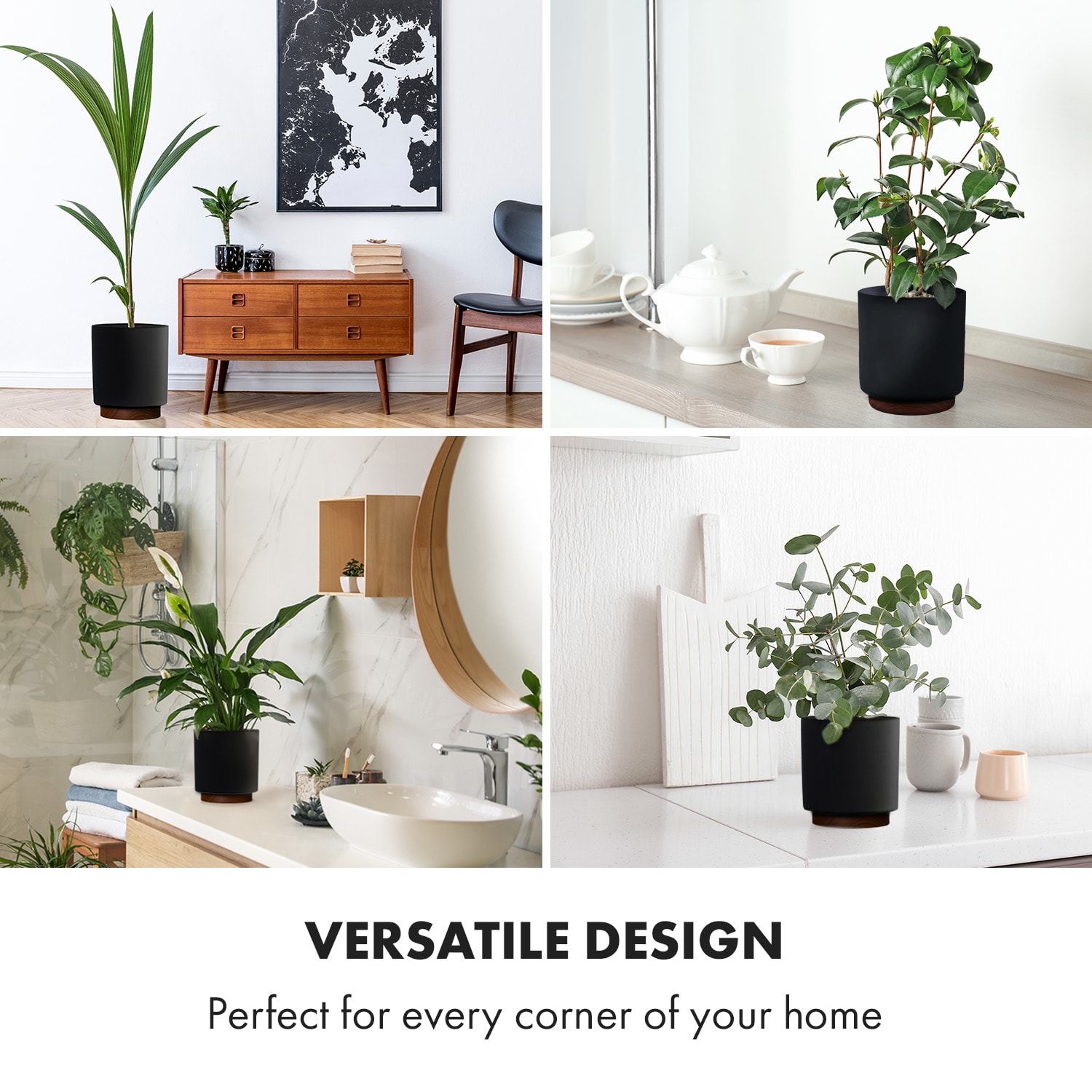 Dopraj tvojim rastlinám nový domov: v luxusných kvetináčoch Enspijk od Fox & Fern by blumfeldt z robustného materiálu polystone sa tvoji zelení kamaráti môžu cítiť dobre a skvelo prosperovať. Polystone je kombinácia z kameňa, cementu a sklených vlákien, ktorý je veľmi pevný a tvrdý a zároveň o veľa ľahší ako prírodný kameň. Okrem toho je aj veľmi priateľský k rastlinám a kvety, bylinky, kaktusy alebo izbové rastliny môžeš priamo zasadiť do kvetináčov Enspijk. S kvetináčmi Enspijk je postarané aj o správne množstvo vlhkosti, pretože majú dno s odvodom vody. Ten môžeš s vhodnou zátkou ľubovoľne otvárať a zatvárať.Kvalitné nožičky kvetináčov sú celé z orechového dreva a dodávajú kvetináčom nie len stabilitu, ale aj luxusný vzhľad. Popritom pravé drevo perfektne harmonizuje s matným povrchom kvetináčov Enspijk.Exkluzívne kvetináče Enspijk do interiéru a exteriéru navyše dodajú tvojim rastlinám krásny šarm.