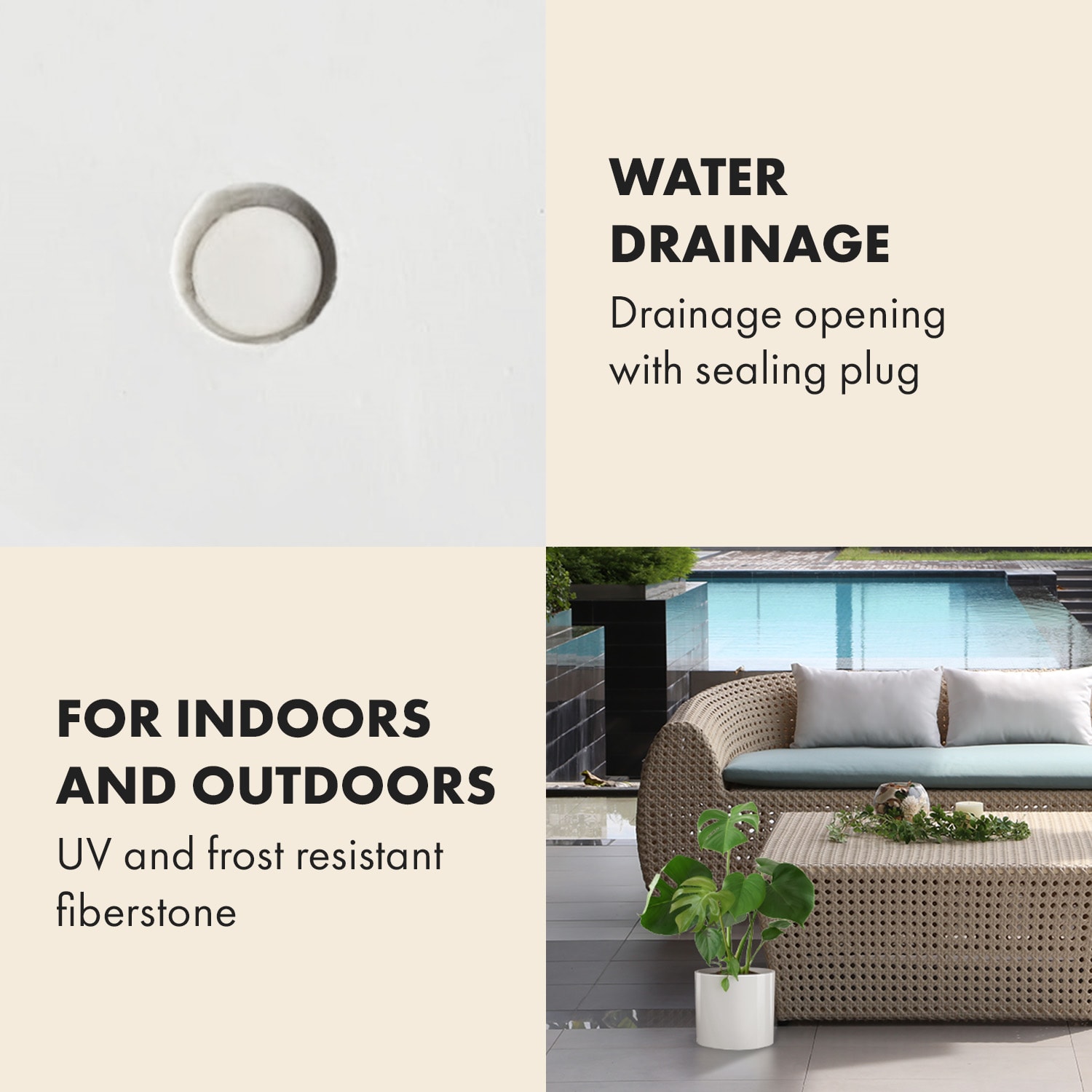 Kvetináč zo záhradníckym talentom: v kvetináči Fox & Fern by blumfeldt Gendt budú tvoje izbové aj balkónové rastliny nádherne rásť a zároveň im bude poskytnuté štýlové a krásne miesto. Superľahký a napriek tomu extrémne robustný kvetináč z materiálu fiberstone je navrhnutý v nadčasovom štýle 50. rokov a úžasne zapadne do každého obytného priestoru. Materiál je o 70 % ľahší ako betón a je tiež UV odolný a mrazuvzdorný, vonku môže zostať po celý rok. Tvoje rastliny uvítajú presun do kvetináča Fox & Fern by blumfeldt Gendt: odtokový otvor v spodnej časti zabezpečuje odtok prebytočnej vody pri polievaní a v prípade potreby sa dá uzavrieť zátkou. Kvetináče sú vhodné ako vrchné kvetináče alebo na priame zasadenie rastlín. Dokonale zapadnú do našich stojanov na rastliny, ktoré umožnia tvojim rastlinám ešte viac vyniknúť.