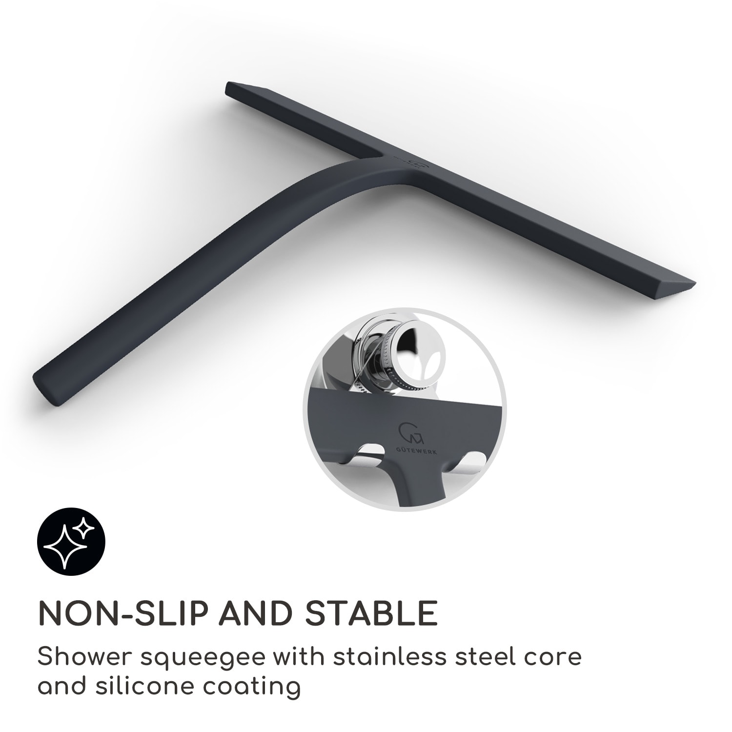 Štýlový pomocník so skvelým účinkom: Gütewerk by blumfeldt Blaze stierka na sprchový kút spoľahlivo čistí a odstraňuje kvapky vody a vlhkosť z hladkých povrchov. Mäkká silikónová čepeľ sa postará o lesk bez šmúh, či už ide o čistenie okien alebo sprchového kúta. Aby ste mali stierku vždy po ruke, súčasťou dodávky sú tri rôzne držiaky: vákuový držiak z nehrdzavejúcej ocele, silikónový držiak a odnímateľný Všetky držiaky sa dajú ľahko pripevniť bez vŕtania alebo lepenia. Moderný a premyslený dizajn výborne dotvára celkový dojem. Pevné jadro z nehrdzavejúcej ocele je uzavreté v mäkkom silikónovom puzdre, ktoré znižuje vŕzganie a má tlmiaci účinok pri páde, čím zabraňuje poškodeniu sprchového kúta, obkladačiek alebo podlahy. Optimálne čistenie, bezpečná manipulácia a elegantný dizajn: Gütewerk by blumfeldt Blaze stierka na sprchový kút stanovuje nové štandardy.